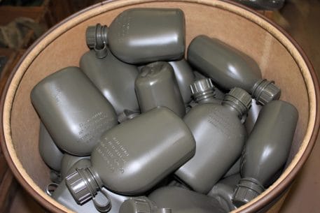 This military issue plastic 1-quart canteen replaced the metal canteen around 1965 and has been the standard issue ever since Vietnam . It is lightweight, quiet, and sturdy. We carry the real military 3 pc. design, NOT the 2 pc. import copy.