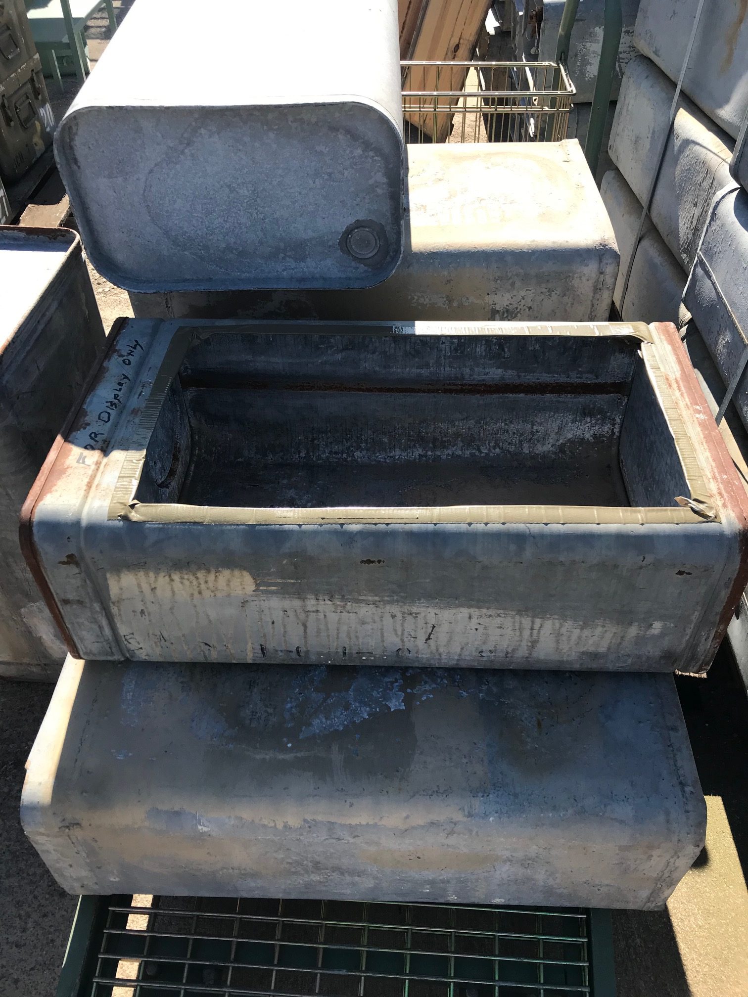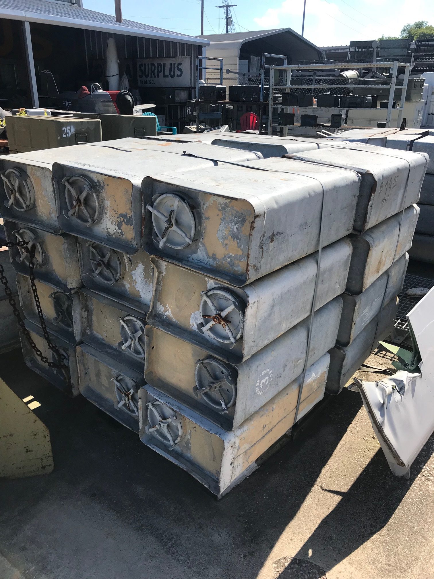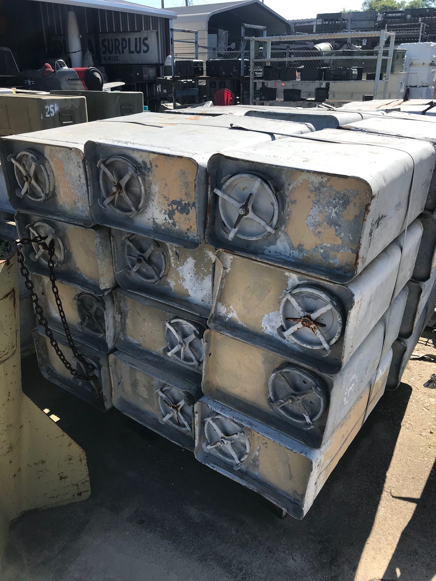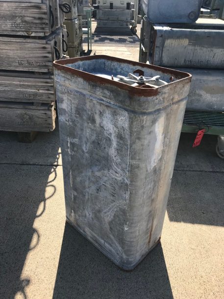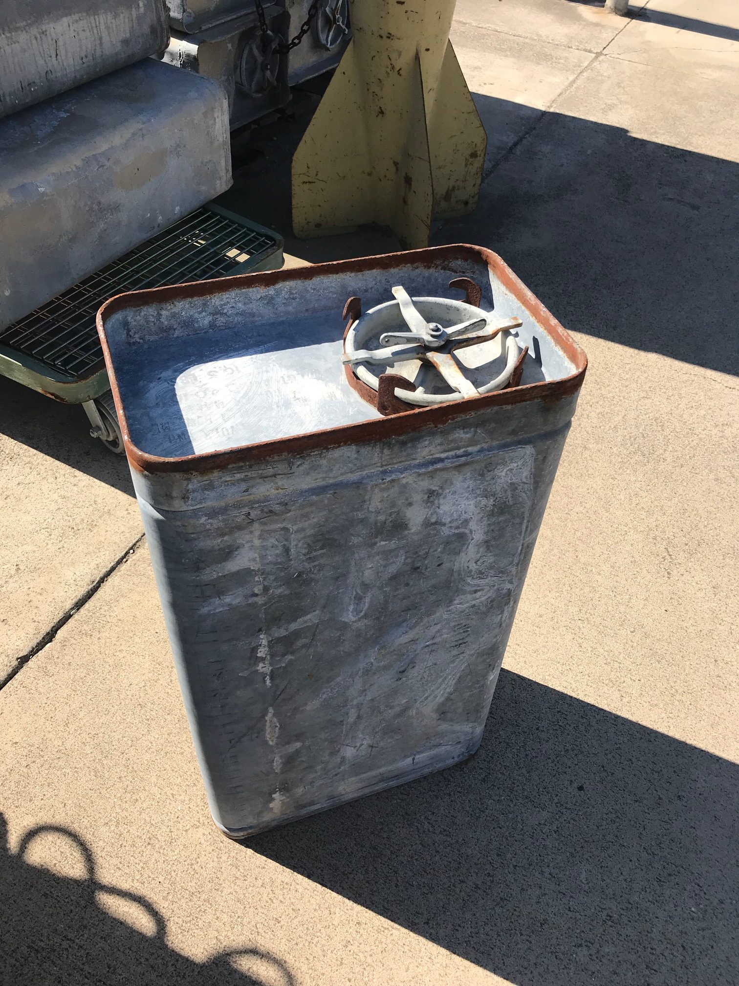 Military Surplus powder cans is what these were originally for. We now sell them as storage containers for a variety of uses when strength and durability matter. These were produced in the 1950’s so the gaskets show a little wear and could use replacing. Twist top locking lid is in need of some lubrication in order for top to move freely.
