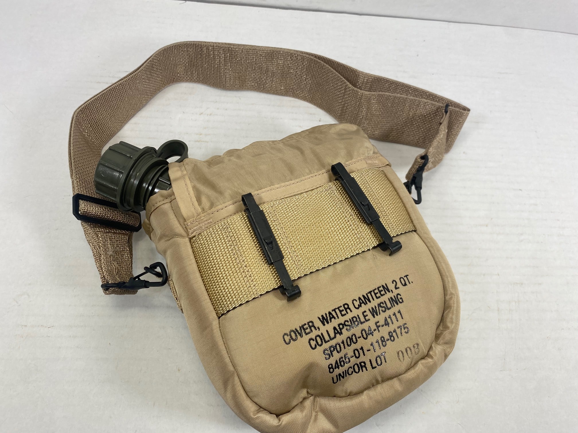 Collapsible 2 qt. canteen with nylon insulated cover and shoulder strap, it is the ultimate for hikers. As you drink, squeeze air out of the top to create a slosh-free water carrier. Worn over shoulder or attach to gear with alice clips. These are battle tested and made to last. Made in the US to military specifications. These have been used from the jungles of Vietnam to Desert Storm and Iraqi Freedom.