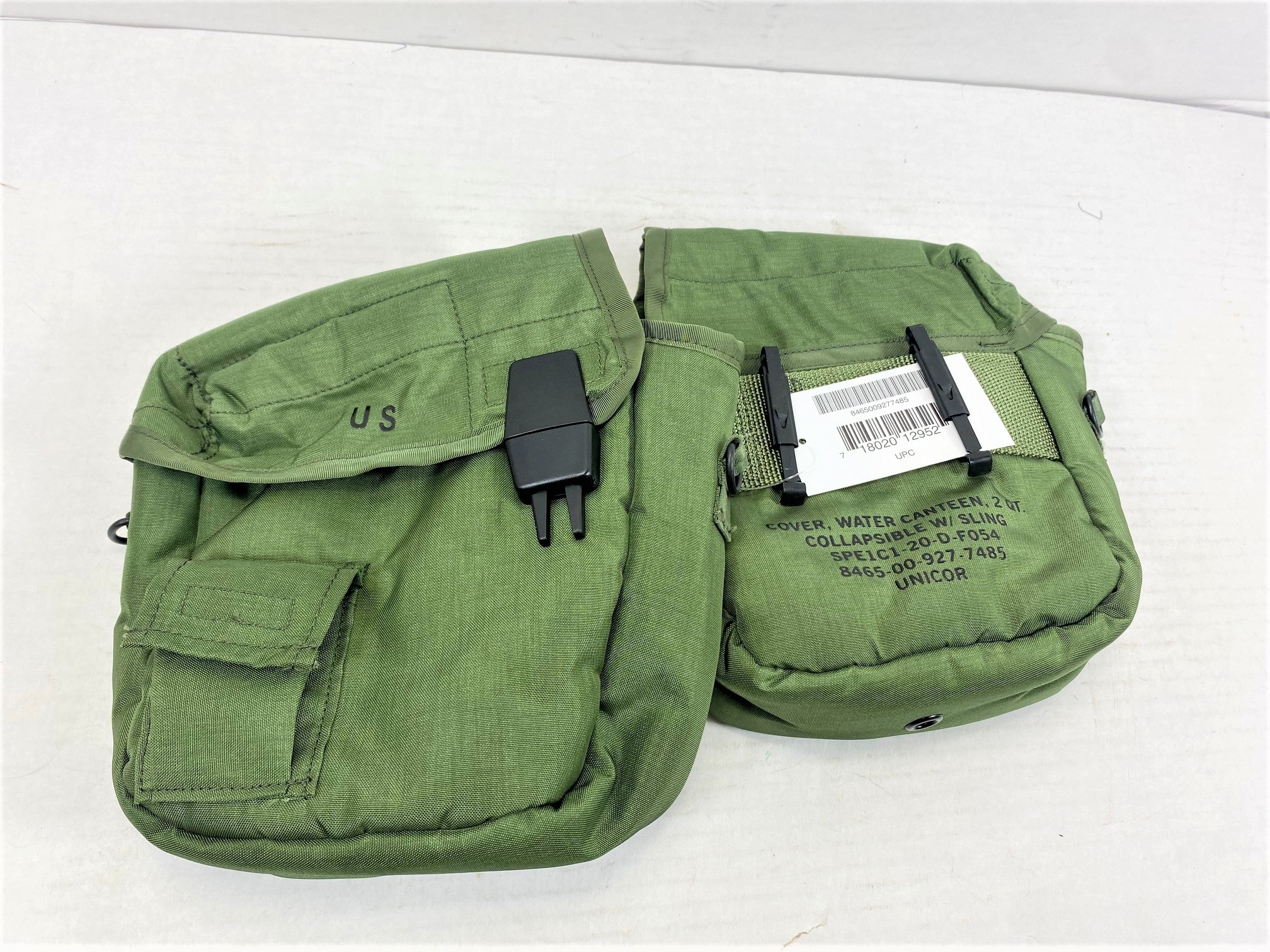 Military issue new 2 quart canteen bladder olive drab new canteen cover. All new condition. Two options are available. Complete set up of 2qt canteen or you can buy just the new cover for a lower price.