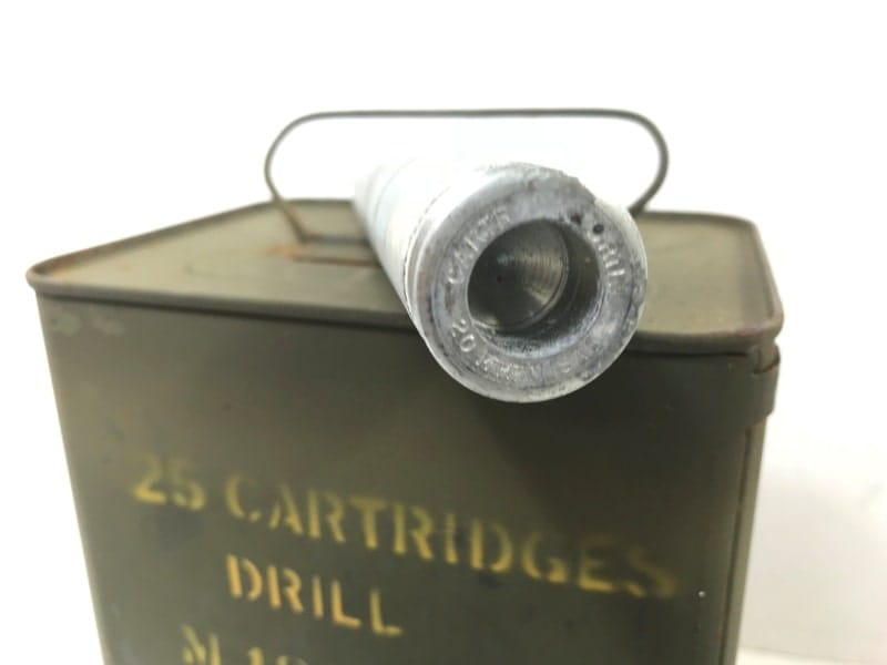 These 20mm dummy ammo shells come in the original tin can. if you order 25 shells you get the can as well
