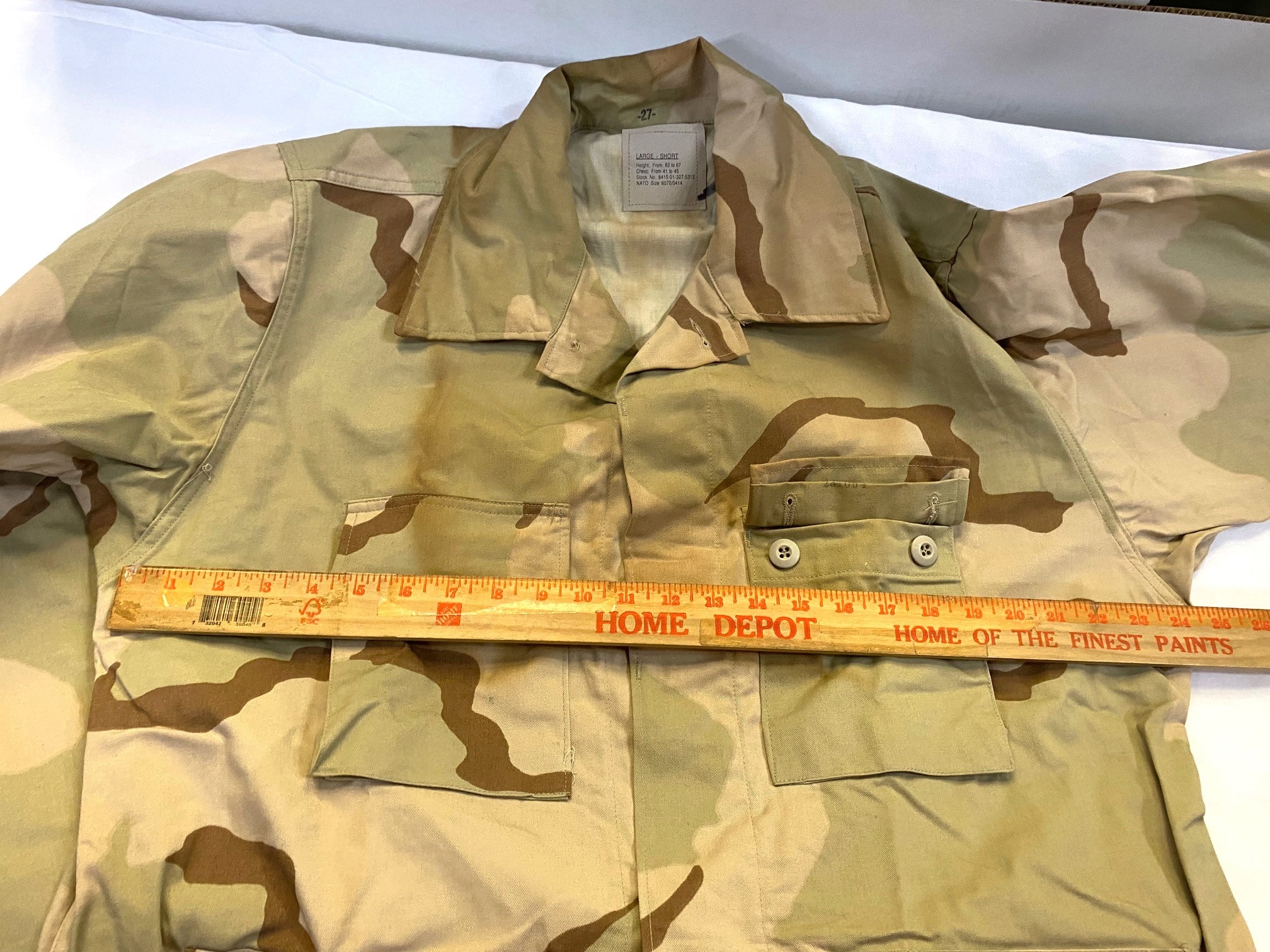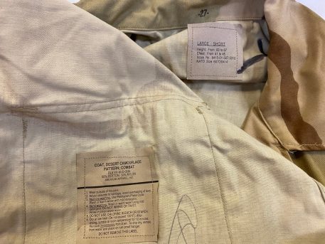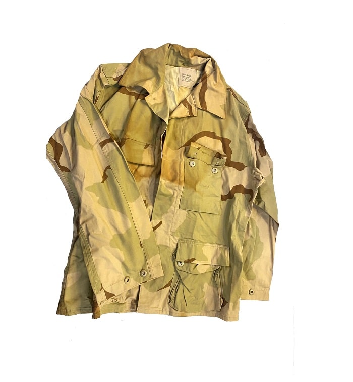 Desert Storm 3 Color Desert military BDU shirts 50/50 Nyco. Manufactured in 1990’s. *DISCOUNTED* BROWNED & STAINED. New old stock with browning from years of storage.