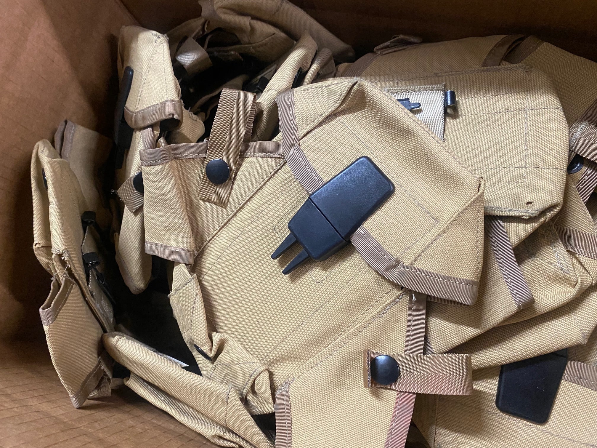 M16 military 30 round magazine pouch. Comes with issue Army surplus alice clips for attachment to gear. Hold 3 30rd mag clips.