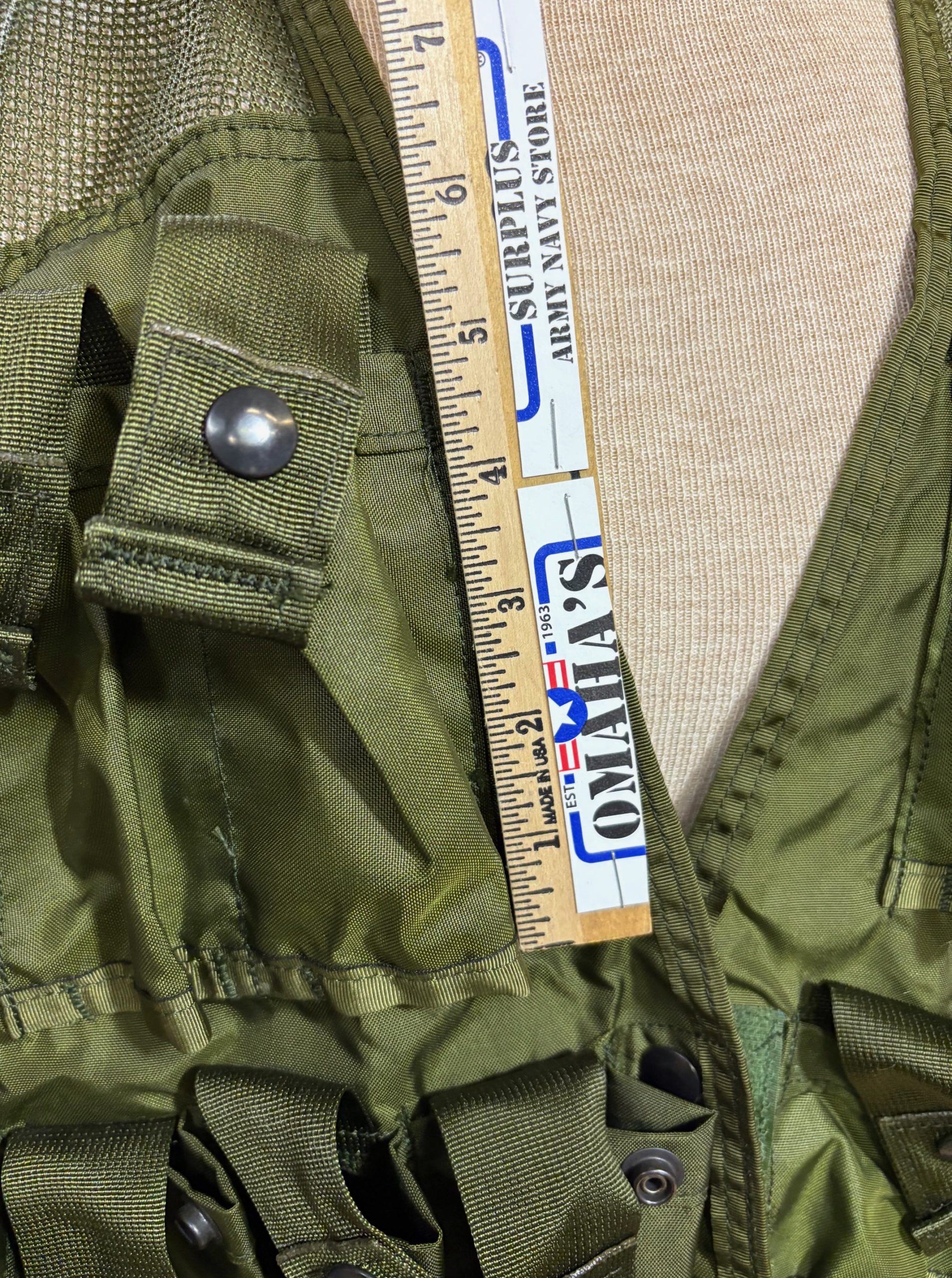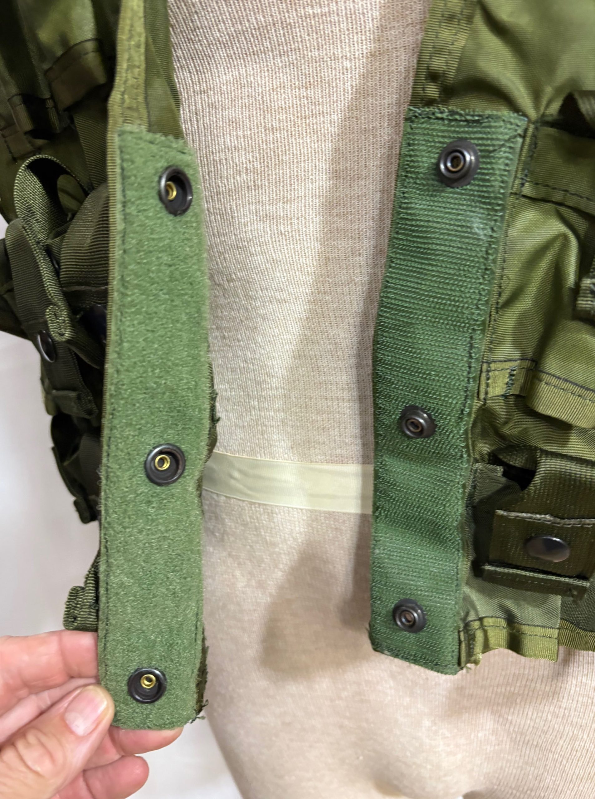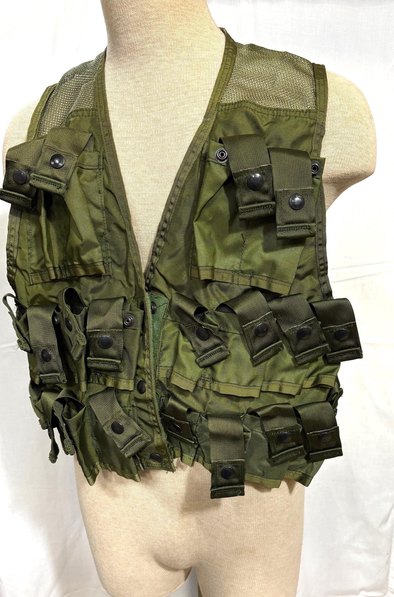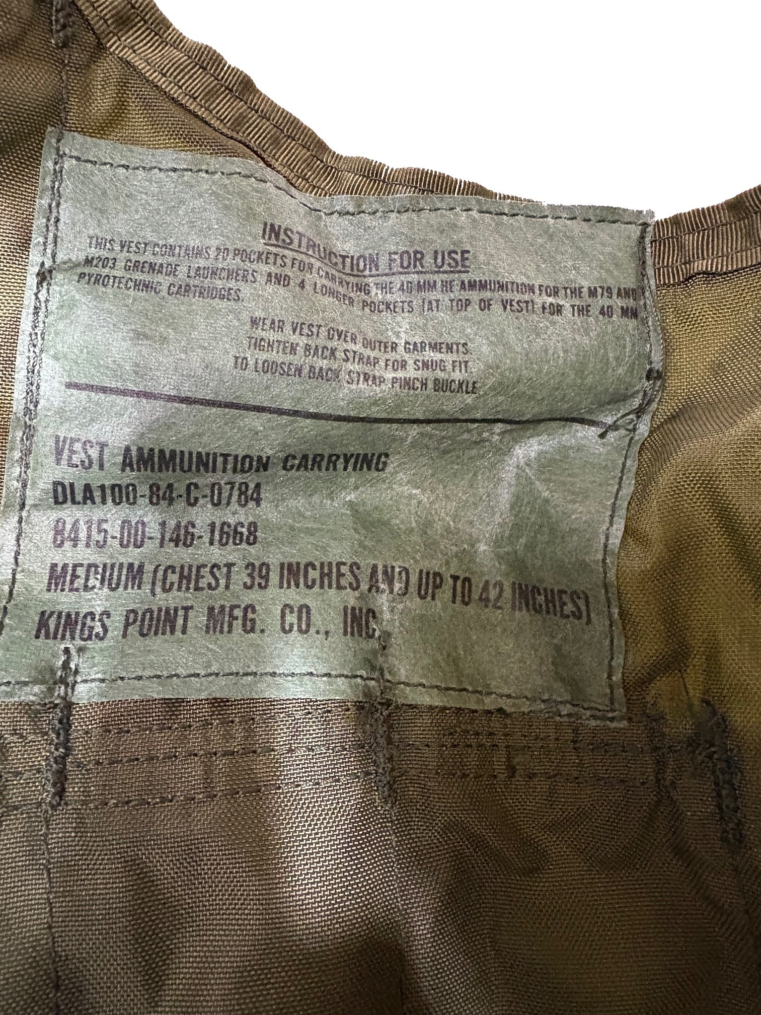 Original G.I. 20 pocket grenade vest for 40mm ammunition. This vest was designed for combat with M79 and M203 grenade launchers. 80’s dated. Size Medium only.