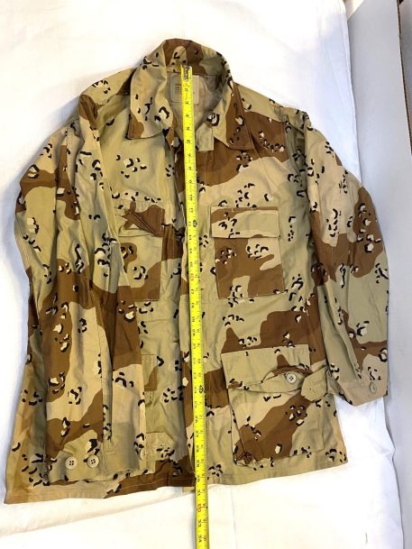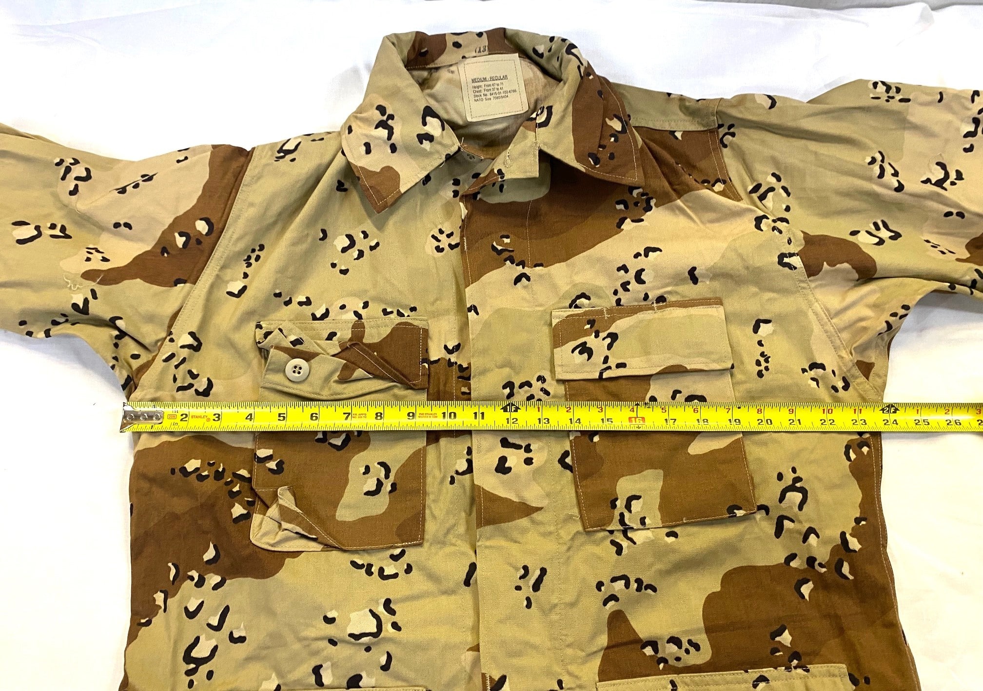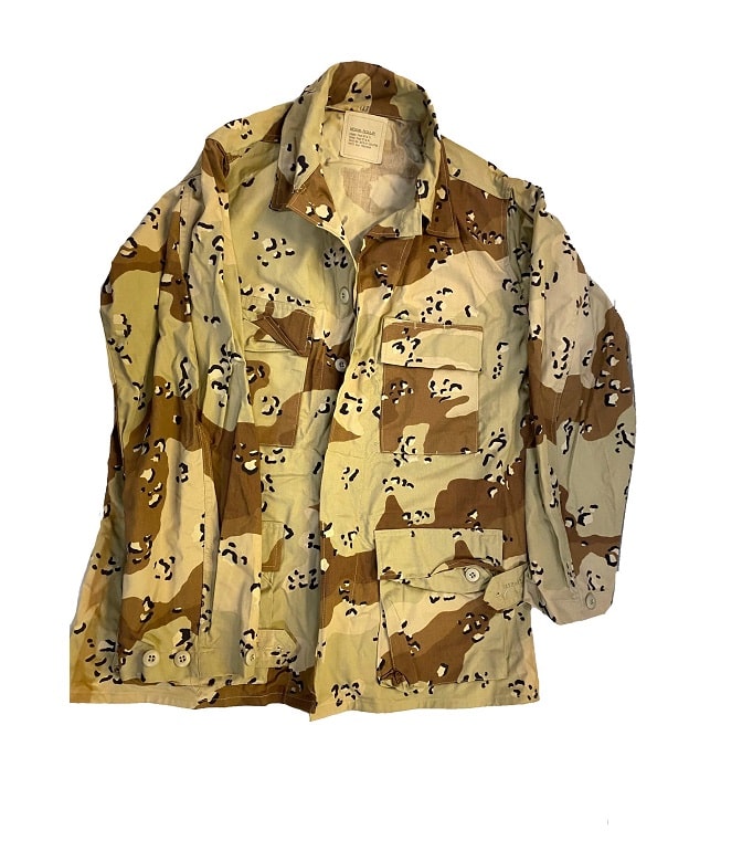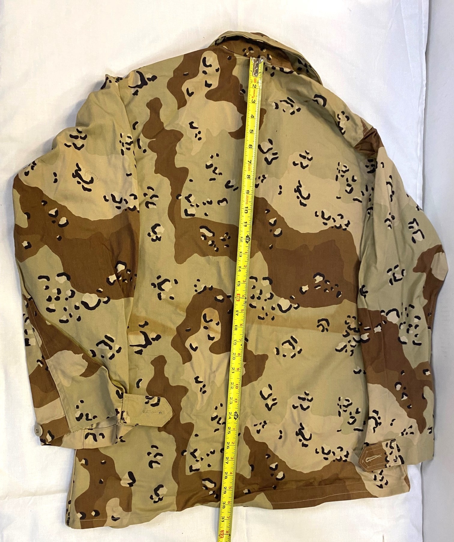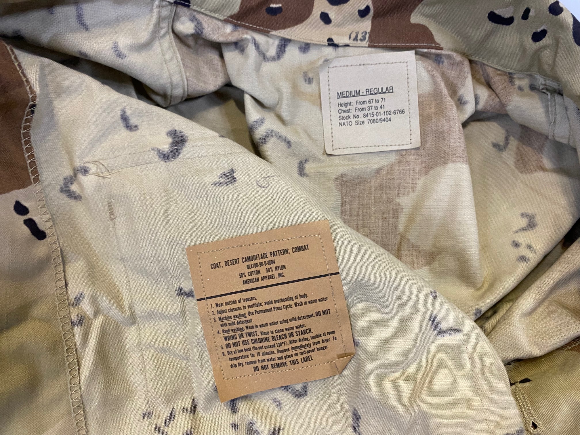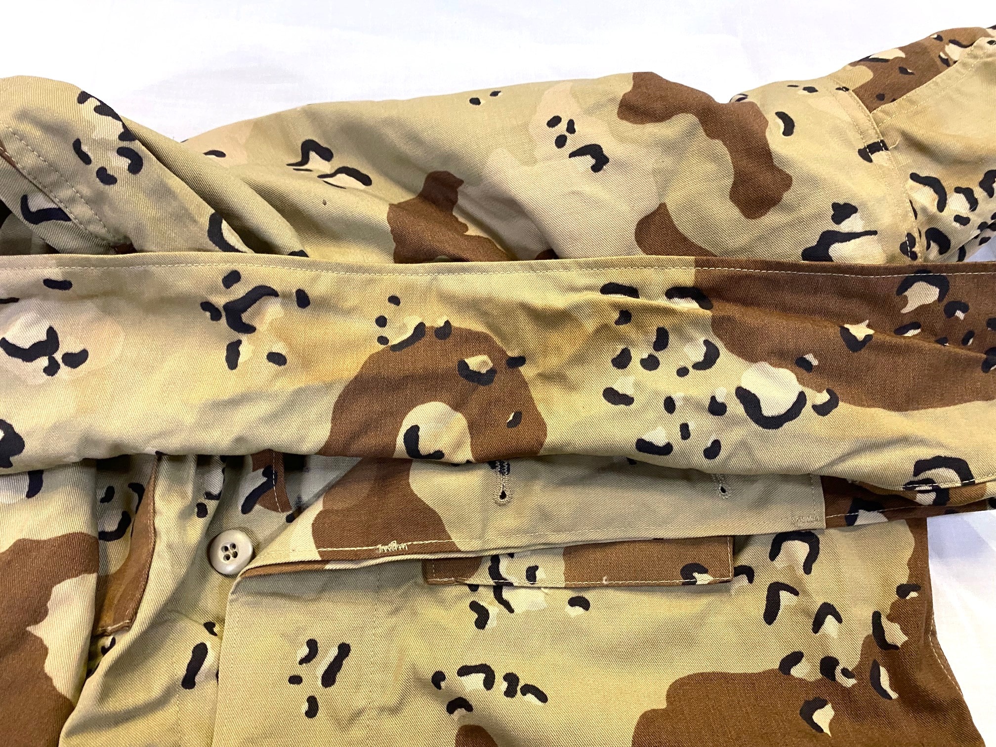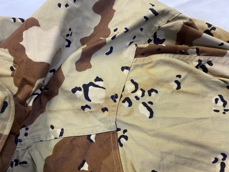 Desert Storm 6 Color chocolate chip desert military BDU shirts 50/50 Nyco. Manufactured in 1990’s. BROWNED & STAINED. New old stock with browning from years of storage. *stains cannot be washed out*