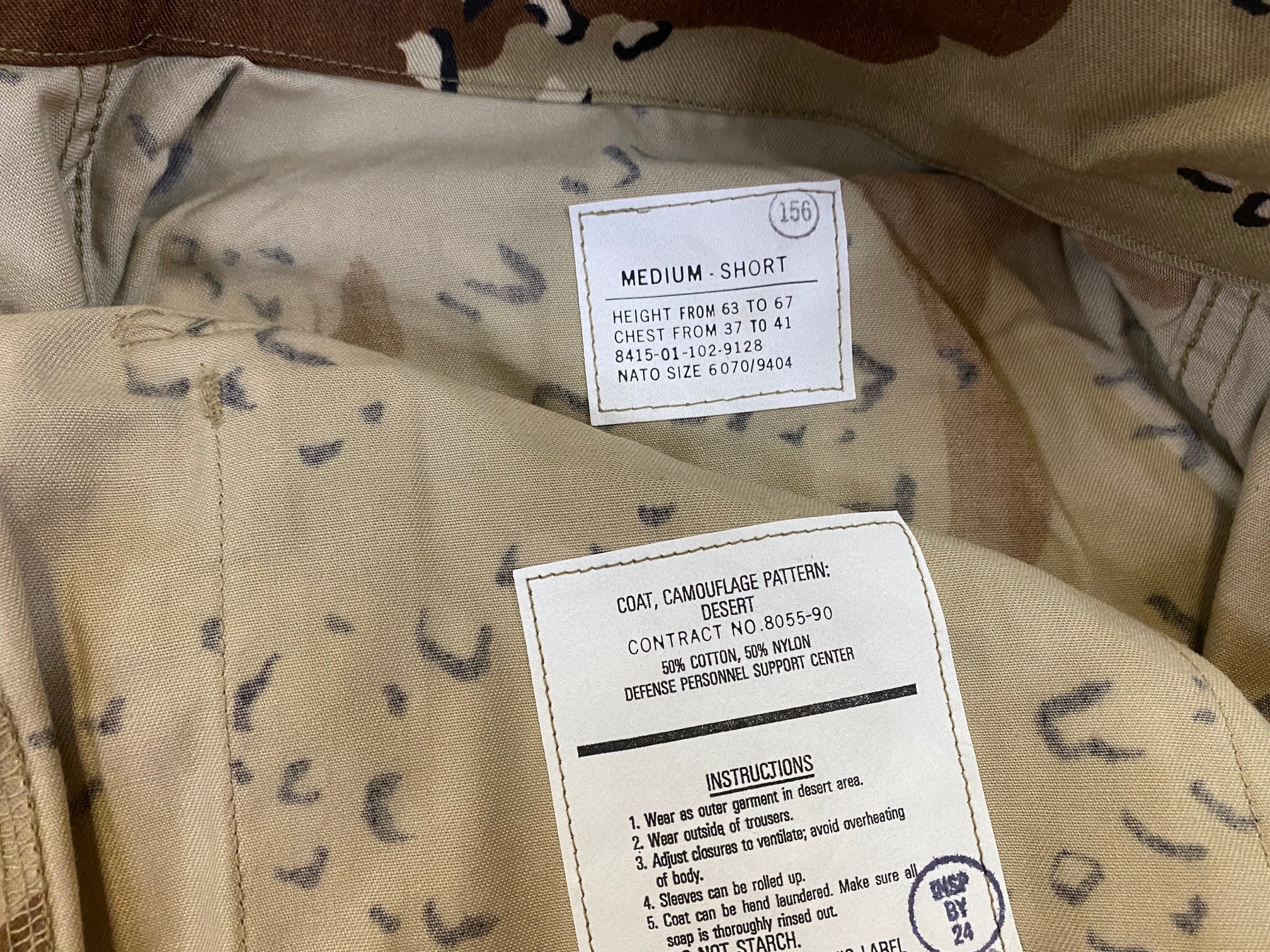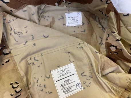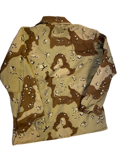 New old stock, 6 color desert bdu shirt. Chocolate chip camo from early desert storm before the 3-color. dcu. Gulf war era camos.