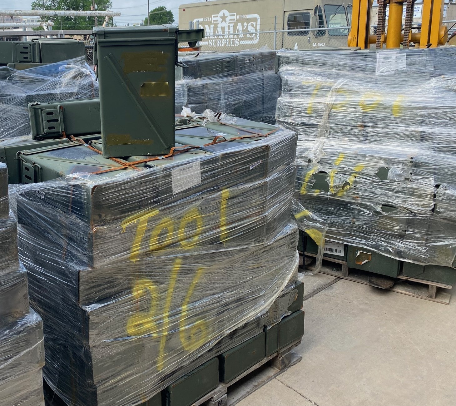 NOTE: Most of the stencils on these cans have been “demil” and painted over with spray paint. Not legible.
