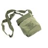Green cotton poly canvas material with nylon shoulder strap. 6″ x 4″ x 6″.