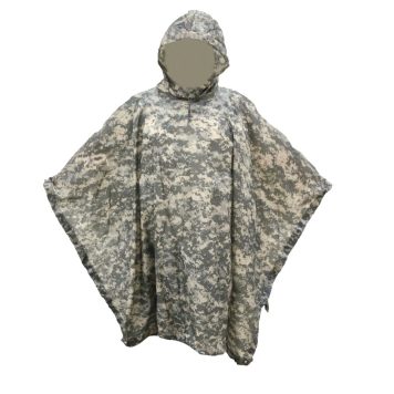 This ACU DIGITAL CAMO poncho was the US forces poncho. Approx 62″ x 80″ in size (standard size, fits most). Made of lightweight ripstop nylon, waterproof. Military style hood. Plastic snap in closures.