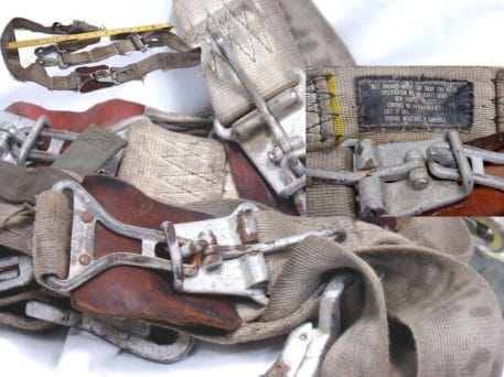 Restraint system for troop carrier aircraft. 1 3/4″ wide x 60″long. They are used in fair condition. It appears that they have been exposed to hydraulic fluid at one time and they do have a smell that may or may not wash out. Nylon