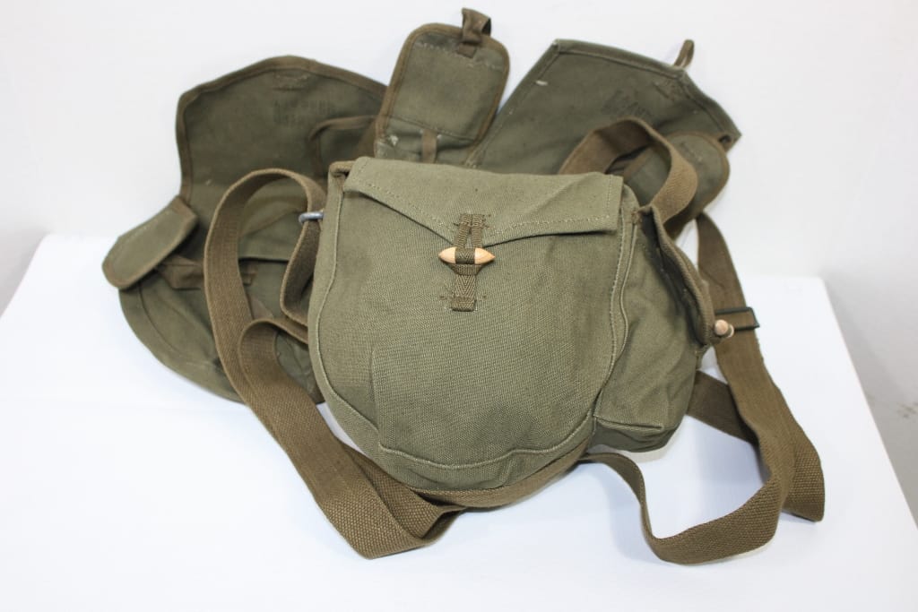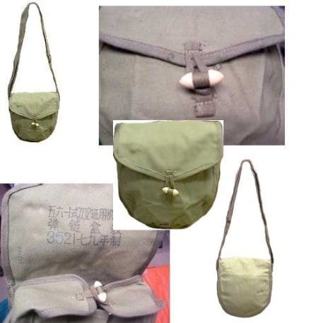 Authentic Chinese army surplus magazine drum pouch. This heavy canvas mag pouch is new and unissued- probably surplus from the Vietnam war. Includes carry sling for easy transport.