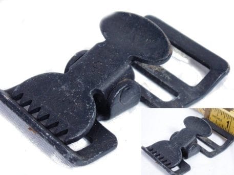 Military general purpose alligator cinch-down buckle that is used on variety of straps from tents to packs. Used in good condition. MADE OF STEEL. Plenty of dirt, scratches, discoloration. Sold in a 10 pack.