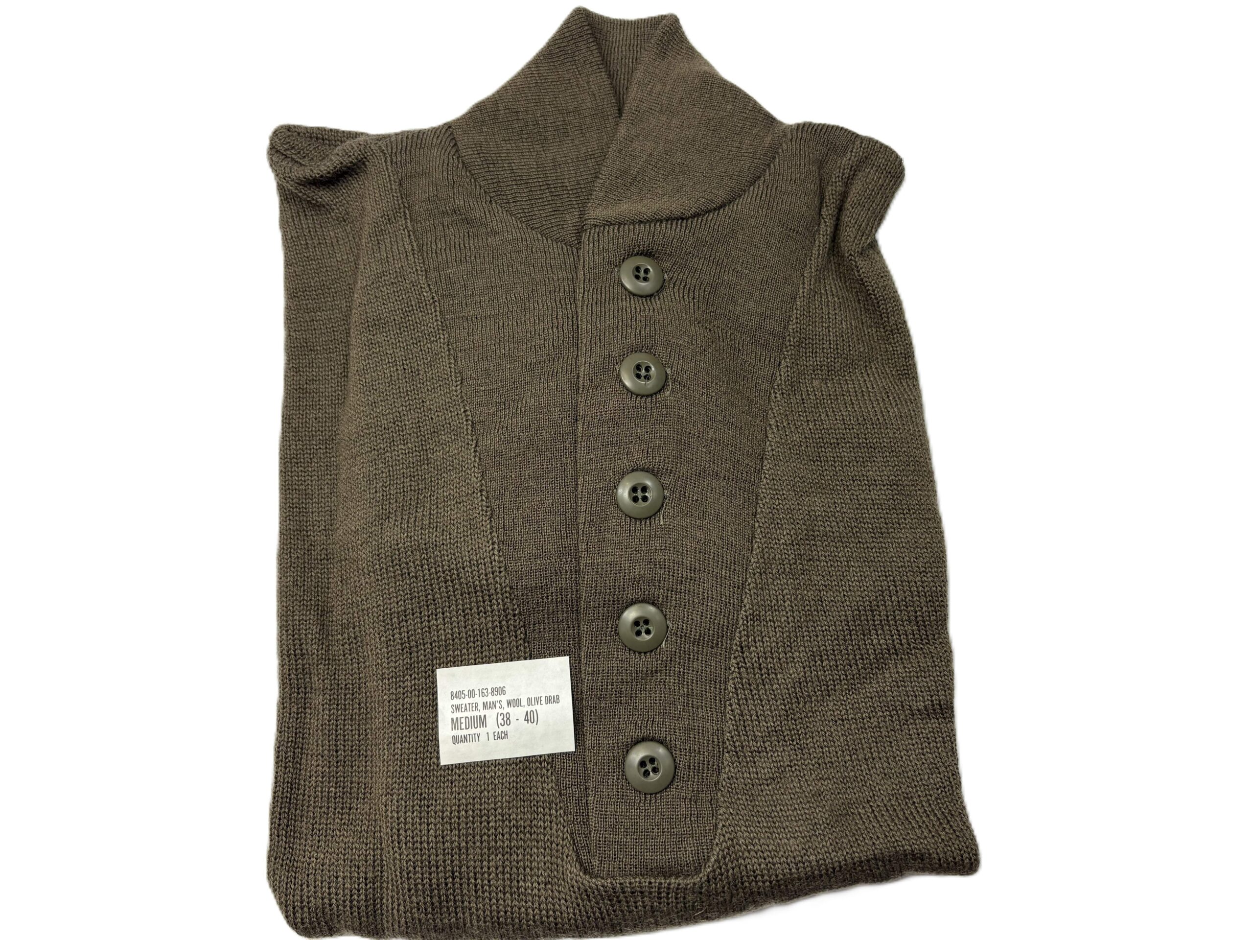 Genuine Issue, Brown dominant Olive Drab Wool Army sweater. Size Medium(38-40). New old stock 1990. 100% WOOL.