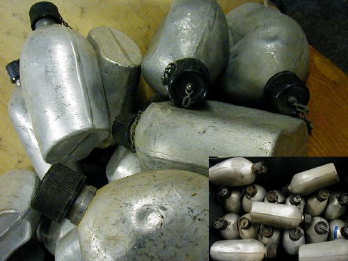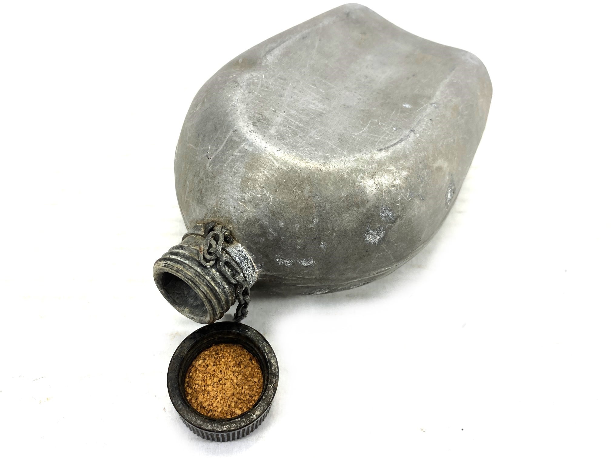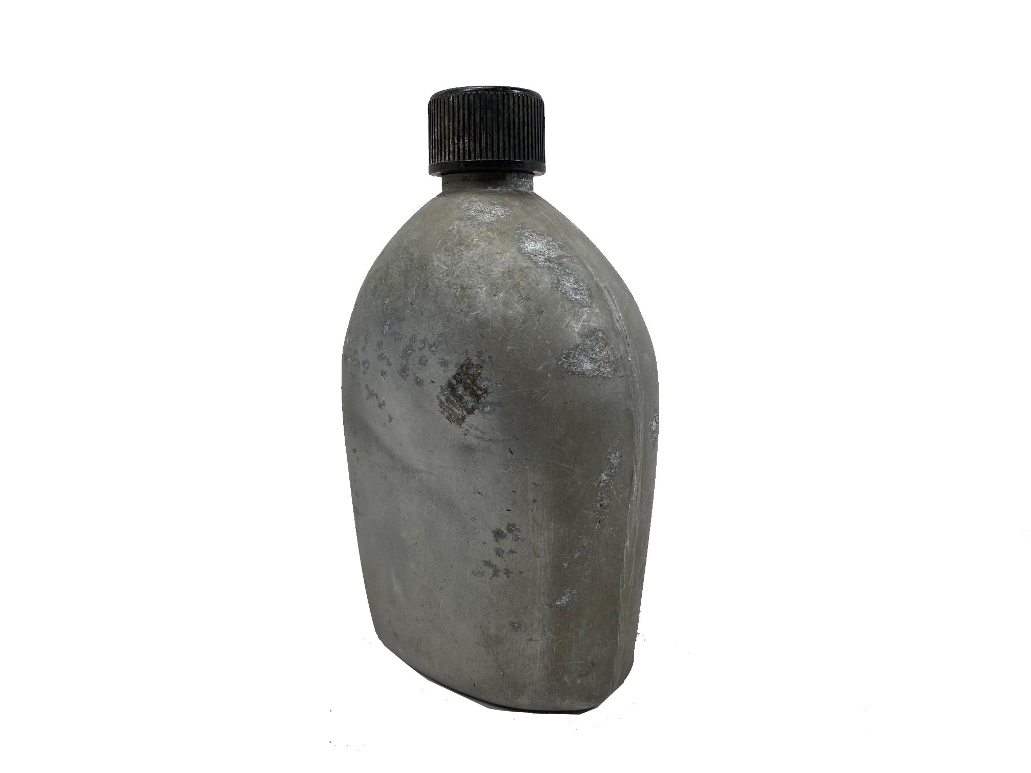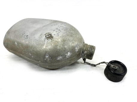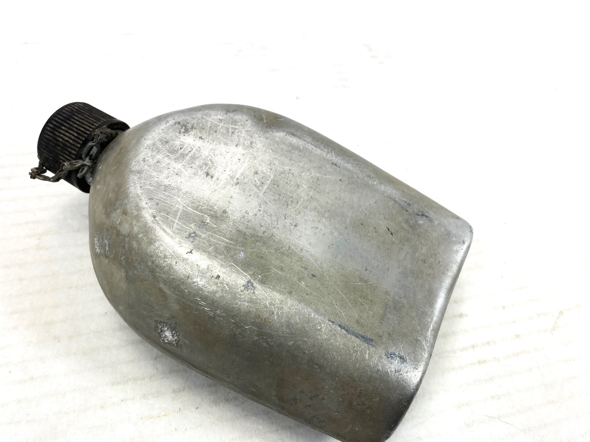 Military surplus World War 2 issue aluminum canteen. 1945 dated with plastic cap, these are original surplus. These canteens are used with a substantial amount of dings and scratches.