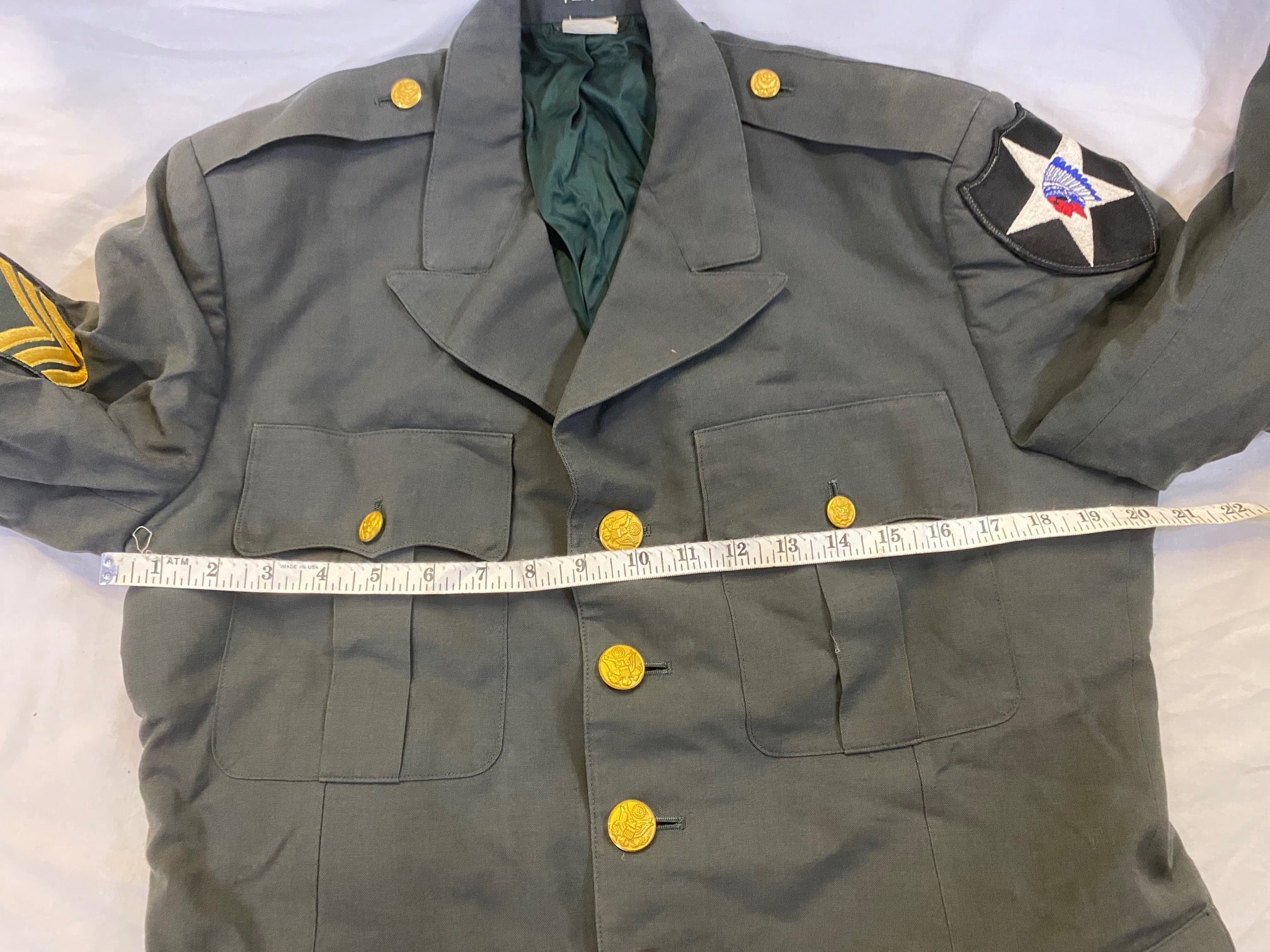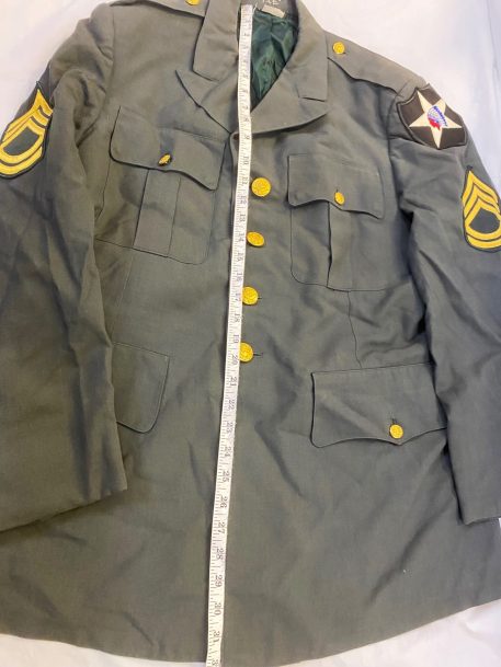 Original US military class A Dress Coat. These Army uniforms have been used and are in good shape. Size 40R (40 Regular). Not all coats will have patches or rank.*