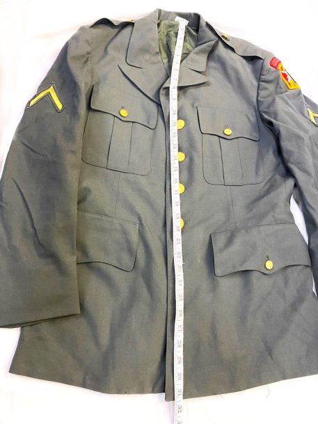 Original US military class A Dress Coat. These Army uniforms have been used and are in good shape. Size 40s (40 SHORT). Not all will have patches or rank.