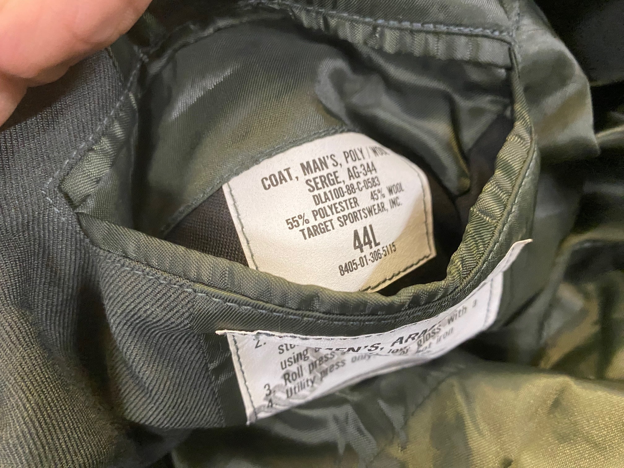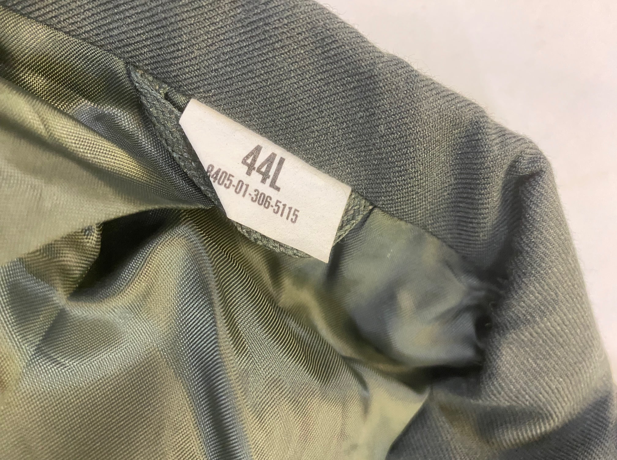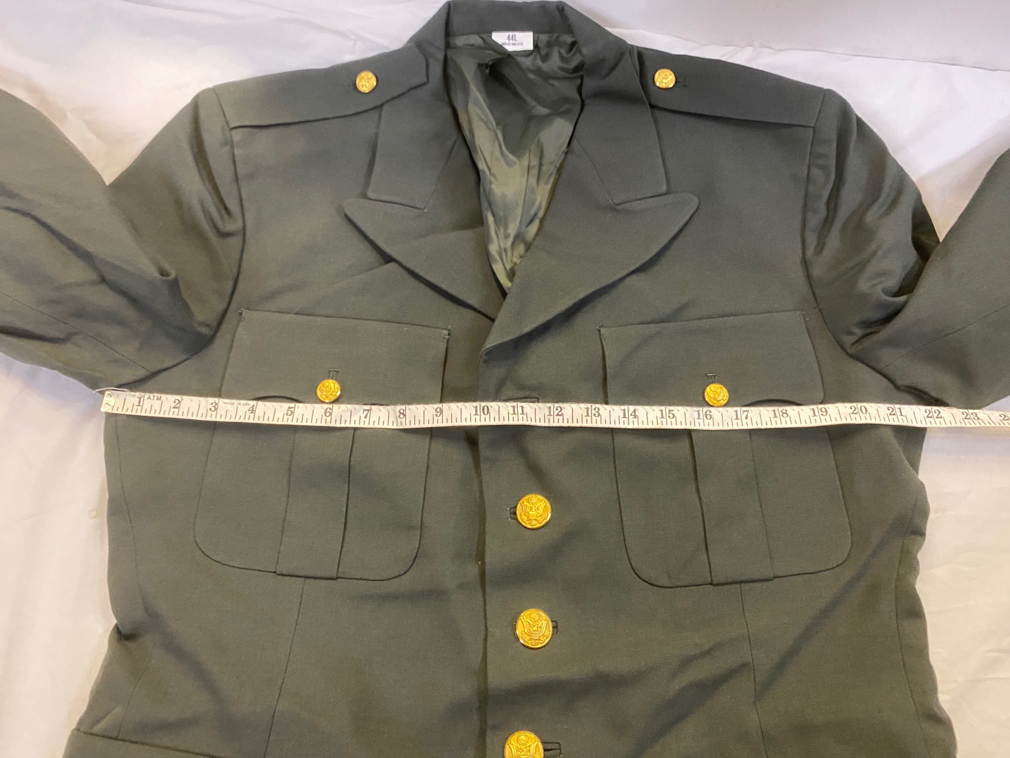 Original US military class A Dress Coat. These Army uniforms have been stored for years and are in good shape. Size 44L (44 LONG). New old stock, some small blemishes from storage.