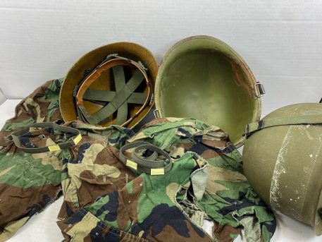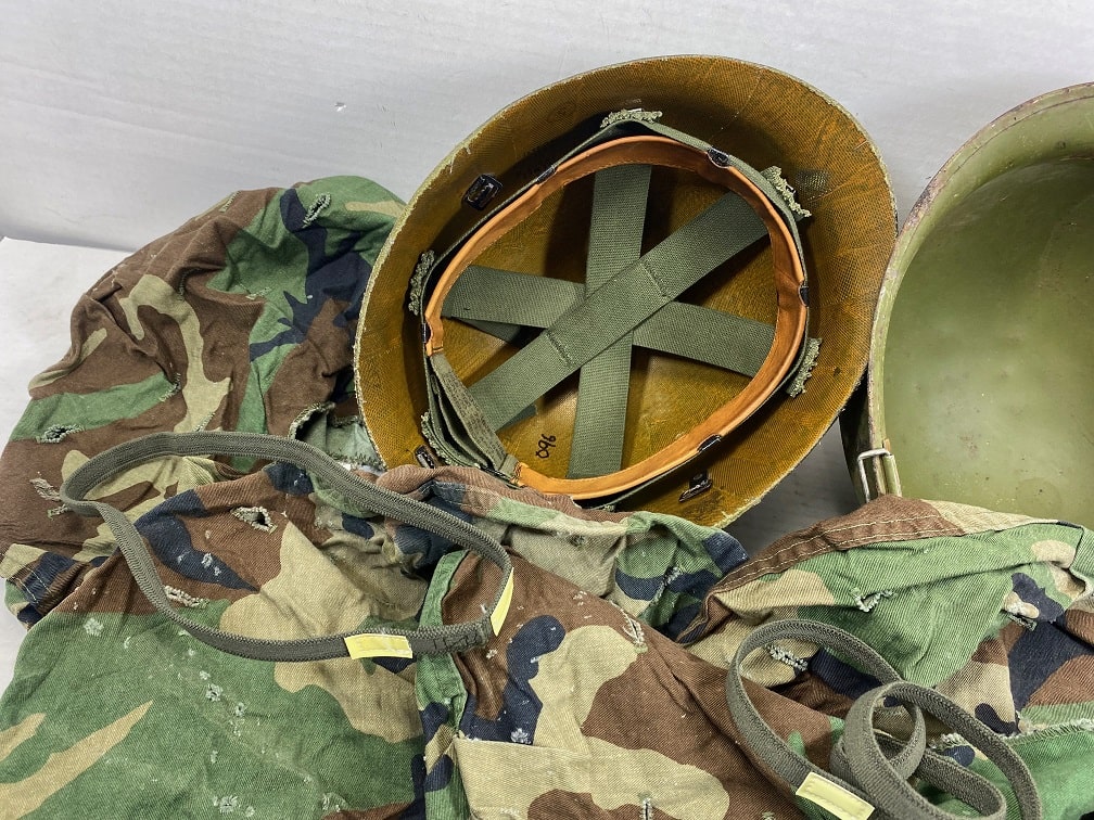 This is the famous “Steel Pot” used by our military from WW2 until the mid 80’s. Complete with woodland cover, liner, and steel pot. *Components are mixed from used good to like-new condition to complete helmets.