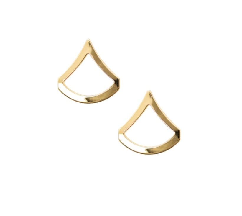 Brass, clutch-back collar ranks are sold by the pair, new original issue. Private First Class. E-3.