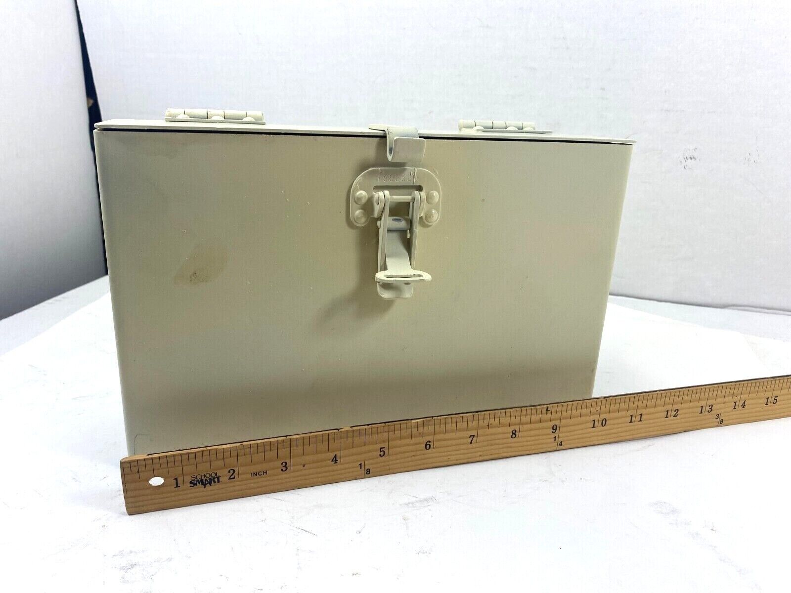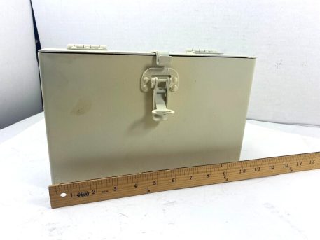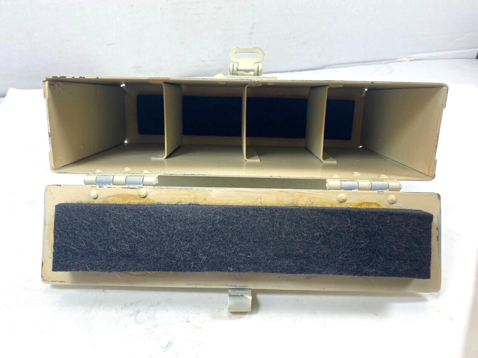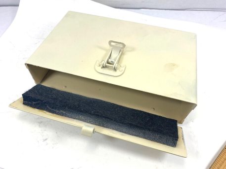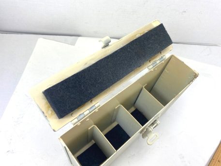 Fits on the M60 tank. This heavy-gauge steel box was designed for safe storage of grenades on the M60 tank. At 11″ x 7″ x 2″ this box makes great on-board container for first-aid kits, tools, flares, etc. New old stock.