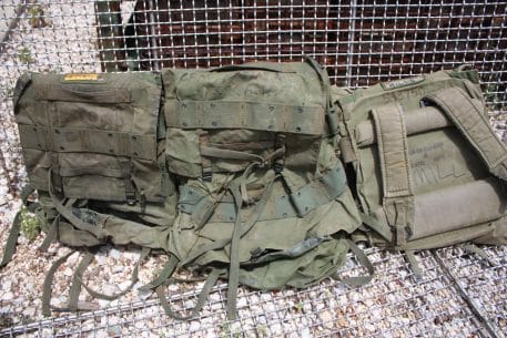 This Australian jungle pack is very unique. inside of the pack is a camouflage pattern. The packs are used and abused