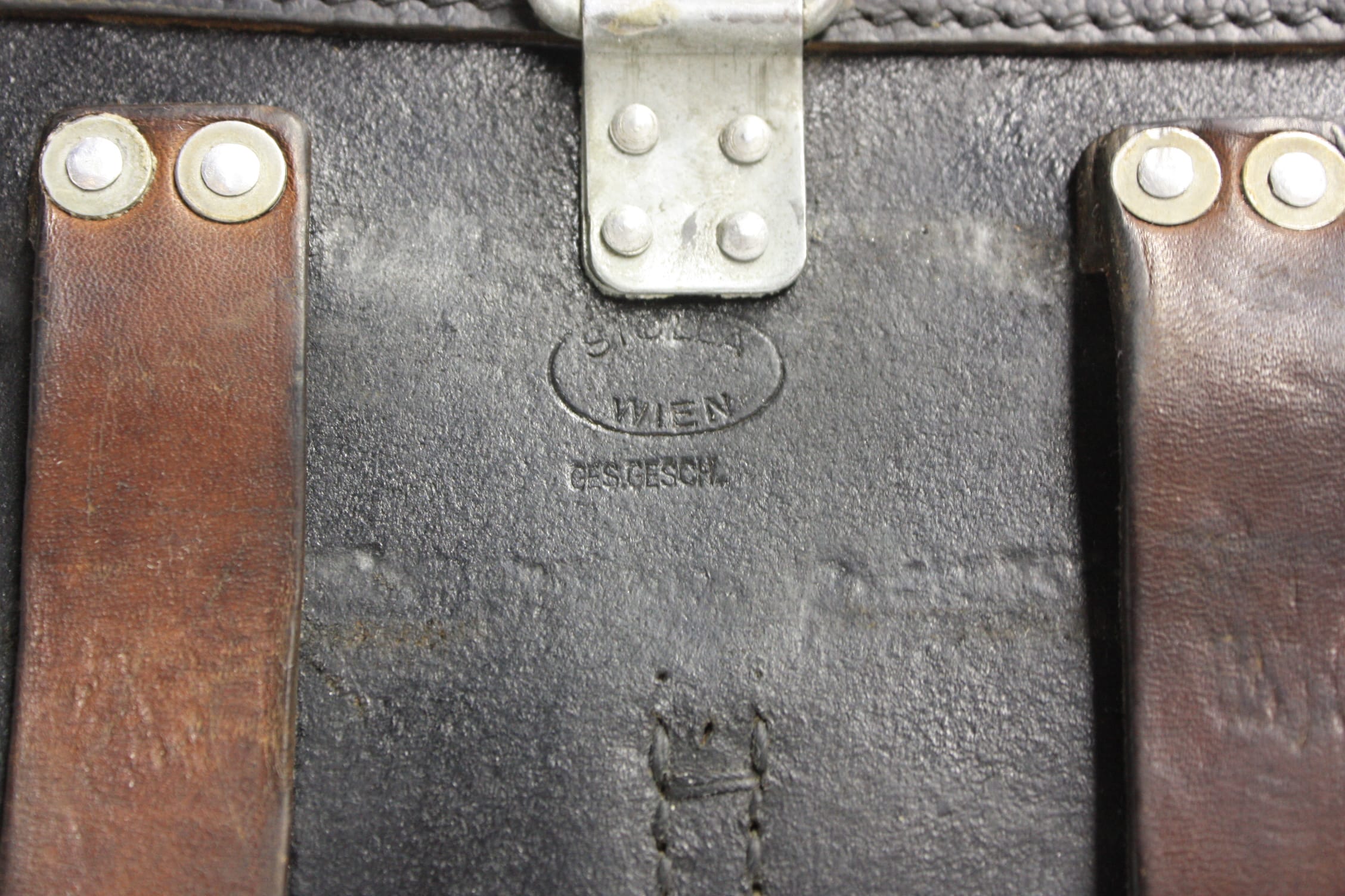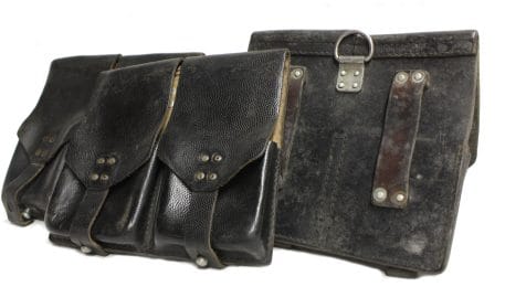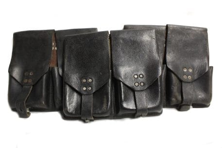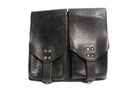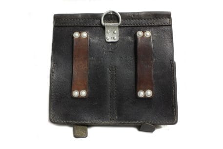 Pebble-textured black leather double STG-58 Austrian mag pouch. FN FAL rifle pouches are designed to hold any 20-round FAL magazine. Hk-91 mags will most likely fit as well. A true military surplus item from Austria.