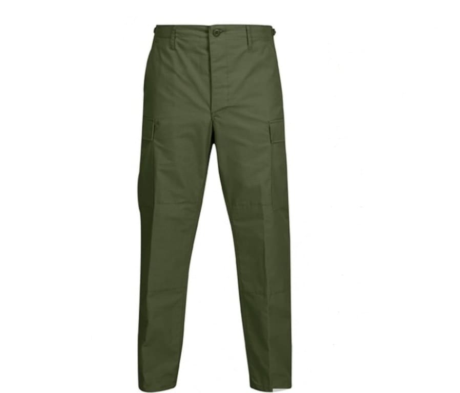 Made by “Propper”, a leading military contractor. 6 pockets, button fly, padded seat and knees. waist cinch strap allows for a four inch waist adjustment. Drawstring cuffs. Olive Drab Green BDUs pants. Cotton ripstop material