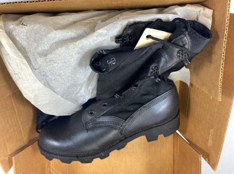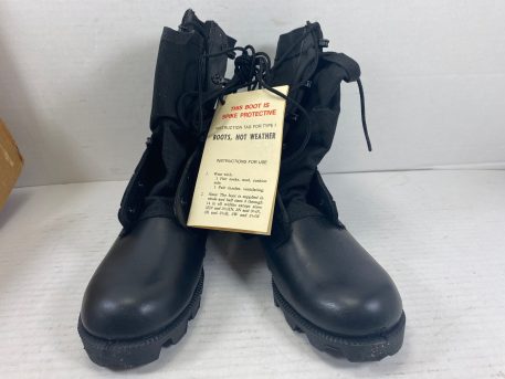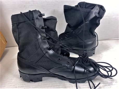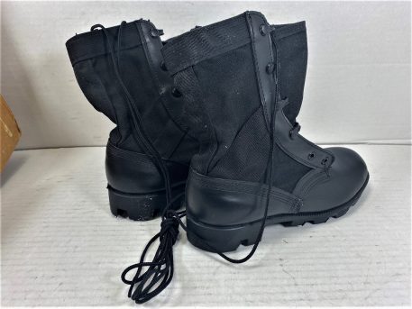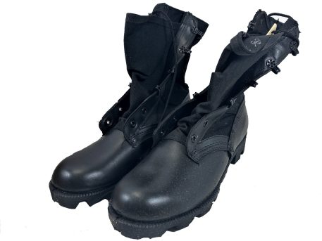 These jungle boots are genuine military issue. The military developed and battle tested these type of “jungle” boots in Vietnam. The boots performed so well that the canvas jungle boot were a part of regular issue up into the late 1980’s. The black jungle boot would come later from the green for tactical ops. These are NOT the imported copies. These boots feature the panama sole. They also have the drain holes, in order for water to flow out of the boots. Remember that these jungle boots are new old stock with only minor shelf-wear rubs and abrasions. Buy with confidence. These are the real deal!
