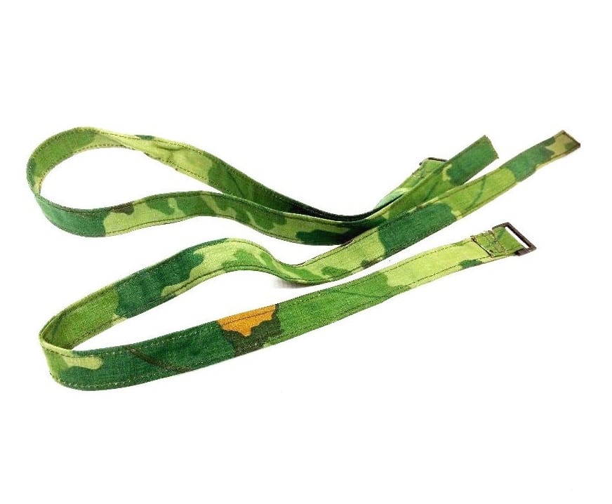 Excellent used condition. These were used for lashing the shelter half or bedroll to field packs. Price is for 2 straps