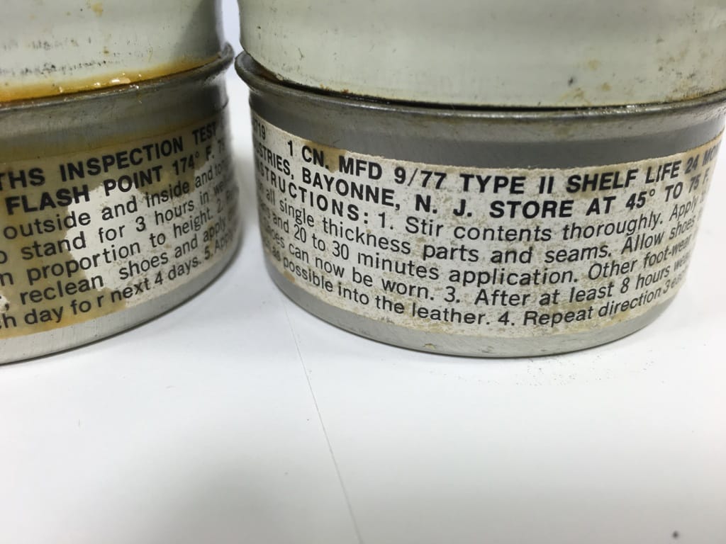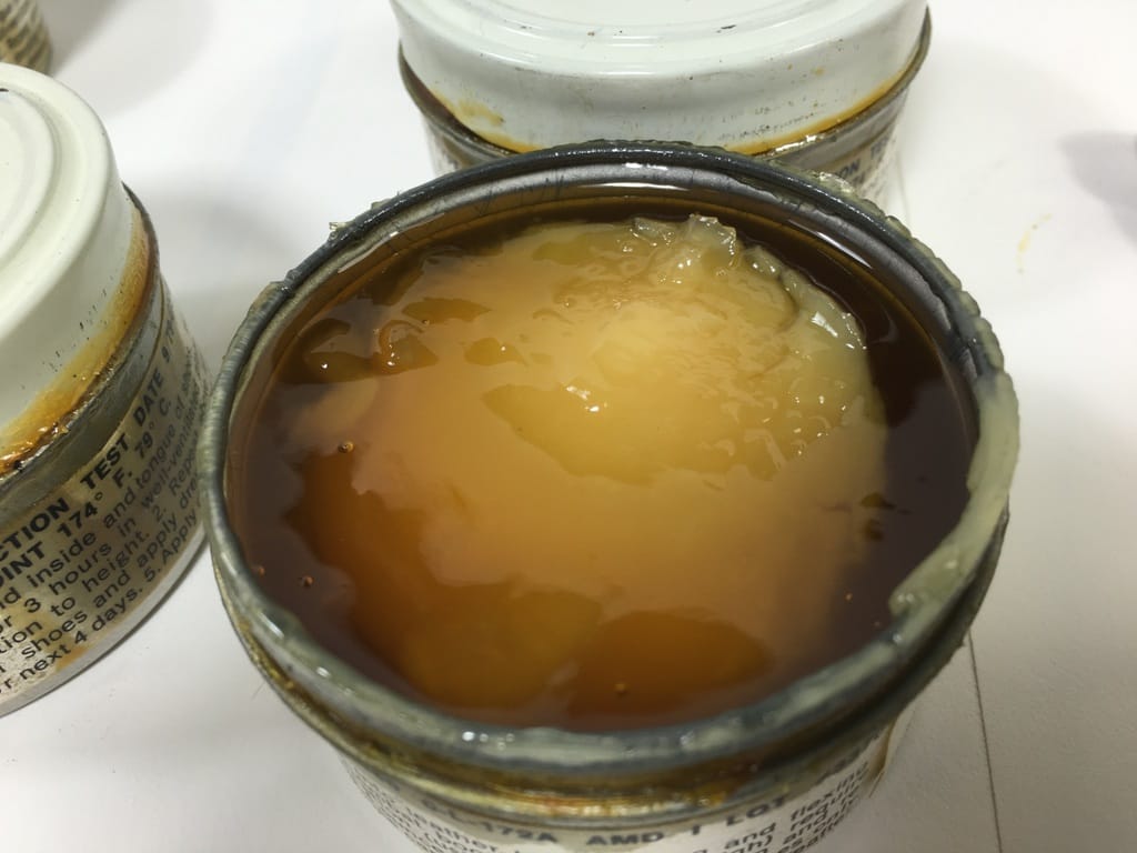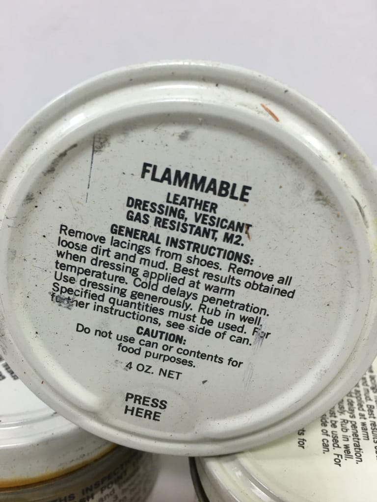 Military boot dressing used back in the day to seal the boots against chemical weapons attack