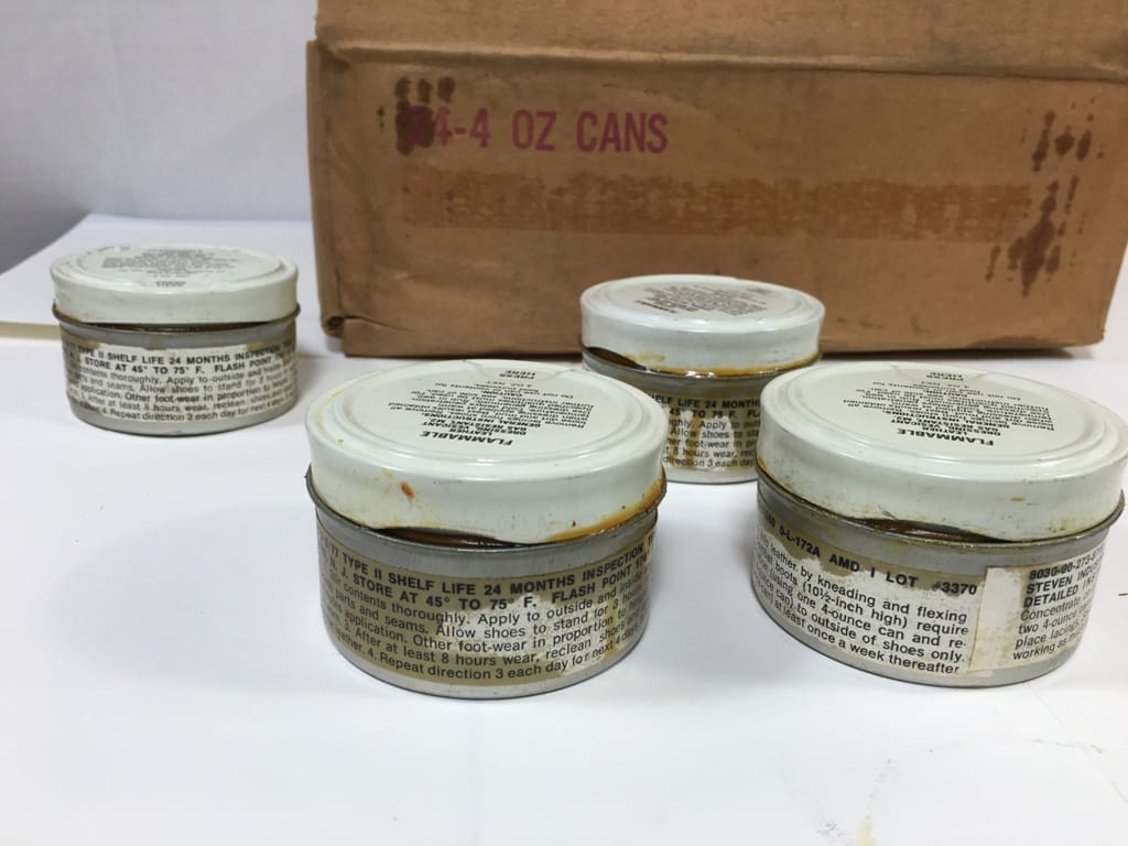 G.I. Boot Dressing. Originally for chemical protection. Makes a great waterproofing dub. 6 cans for $5.99.