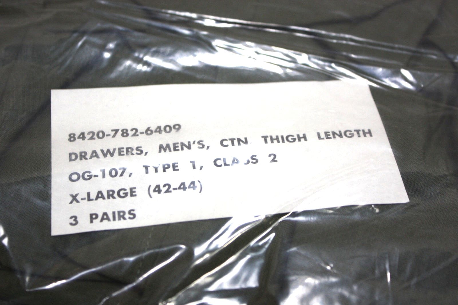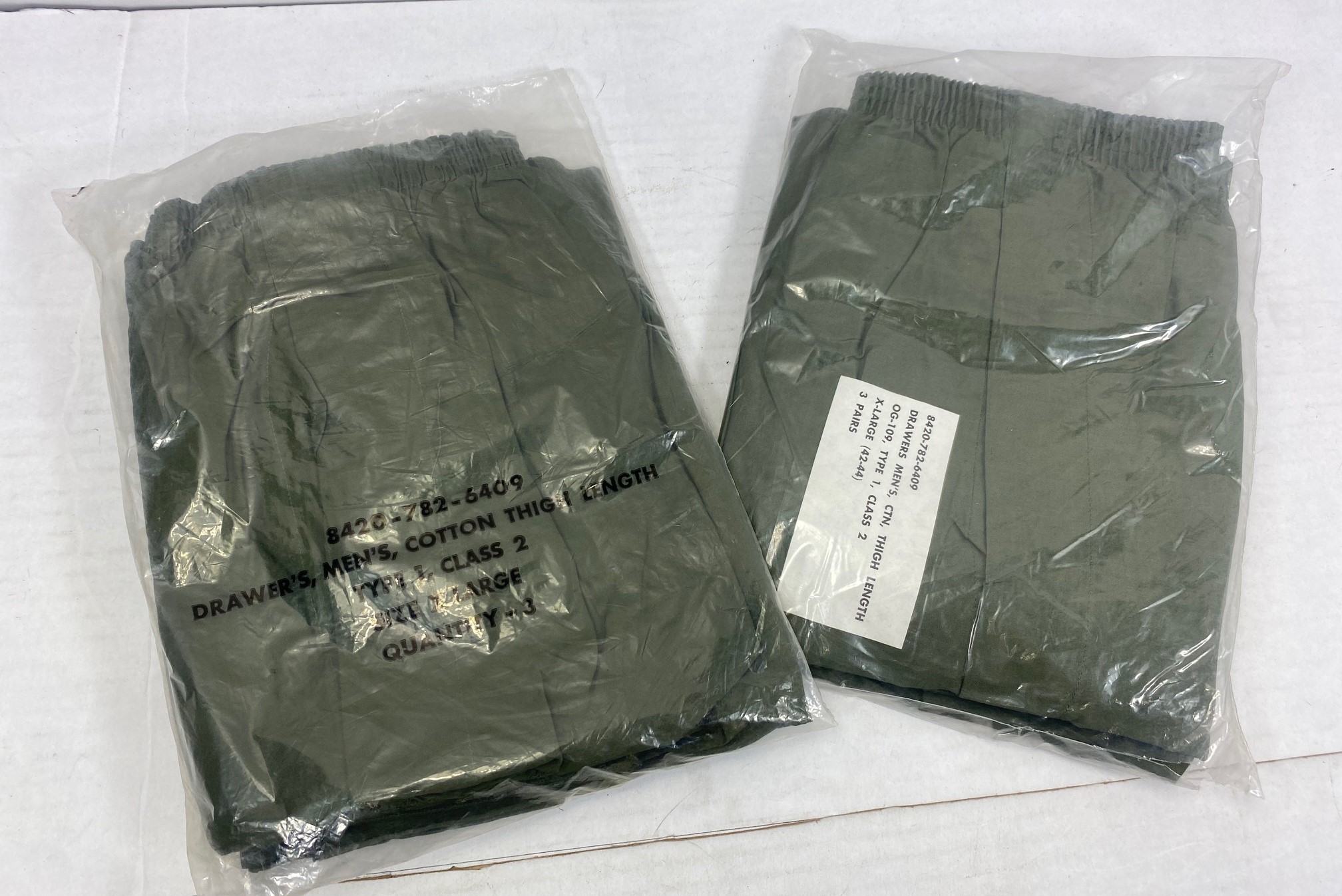 Military issue boxer shorts. New in the package. 3 pair per pack . X-Large (42-44). Olive Drab