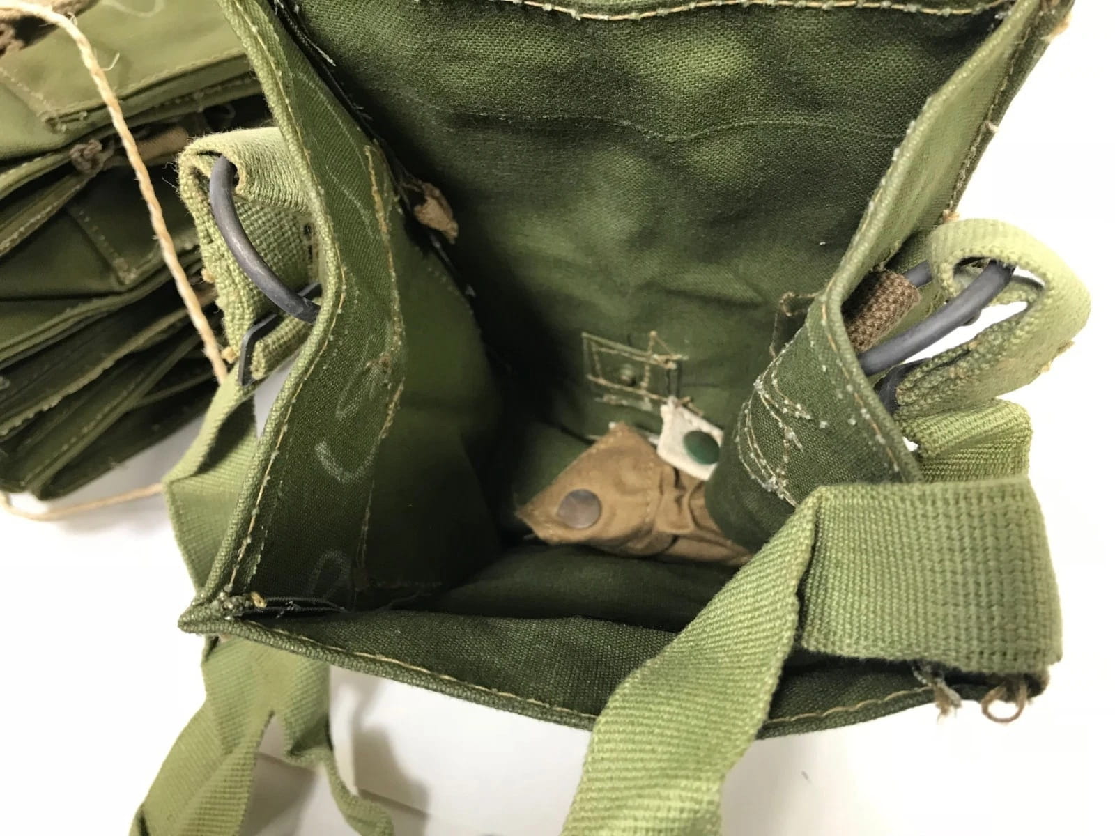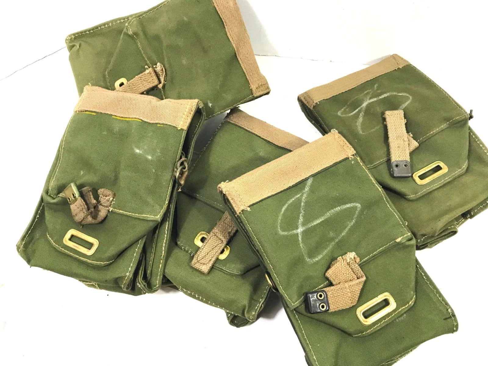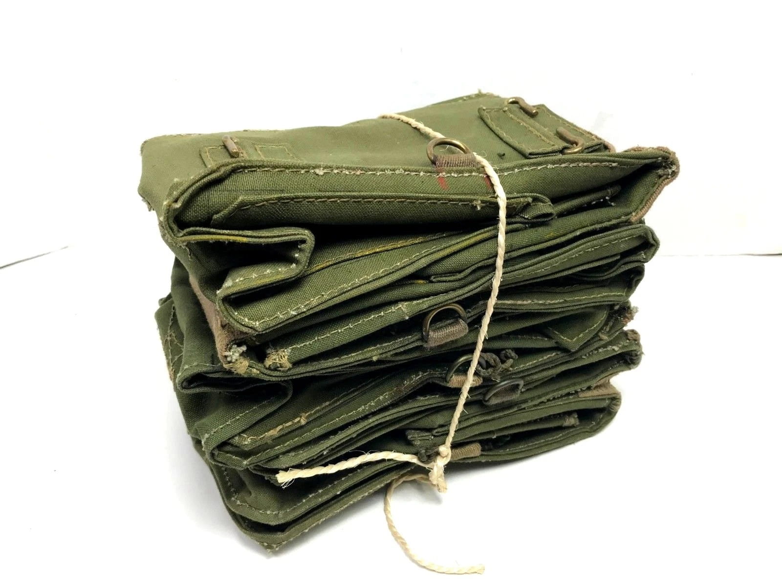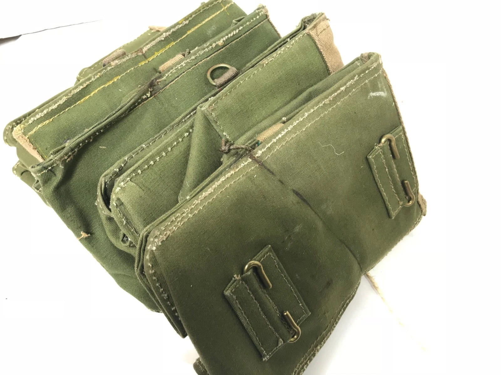 Notice the original maker’s chalk markings on the material. Outstanding quality and character, make this piece an excellent purchase. Measures 4″ x 3″ x 8″, with adjustable shoulder strap and belt carrying attachments.