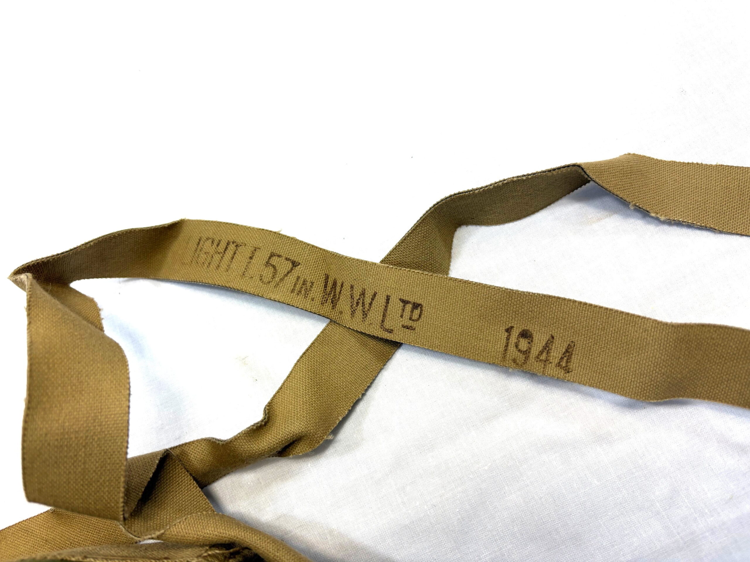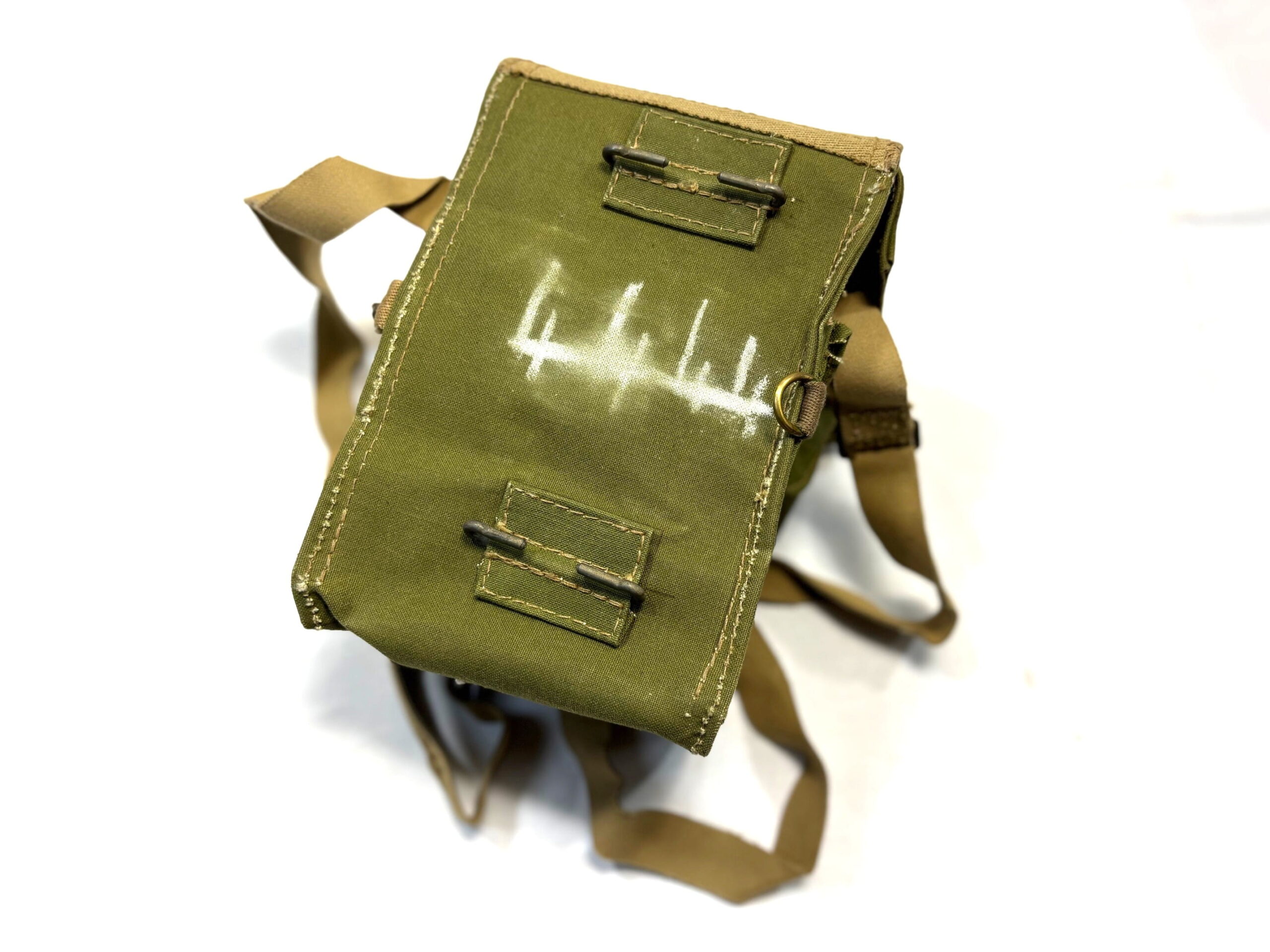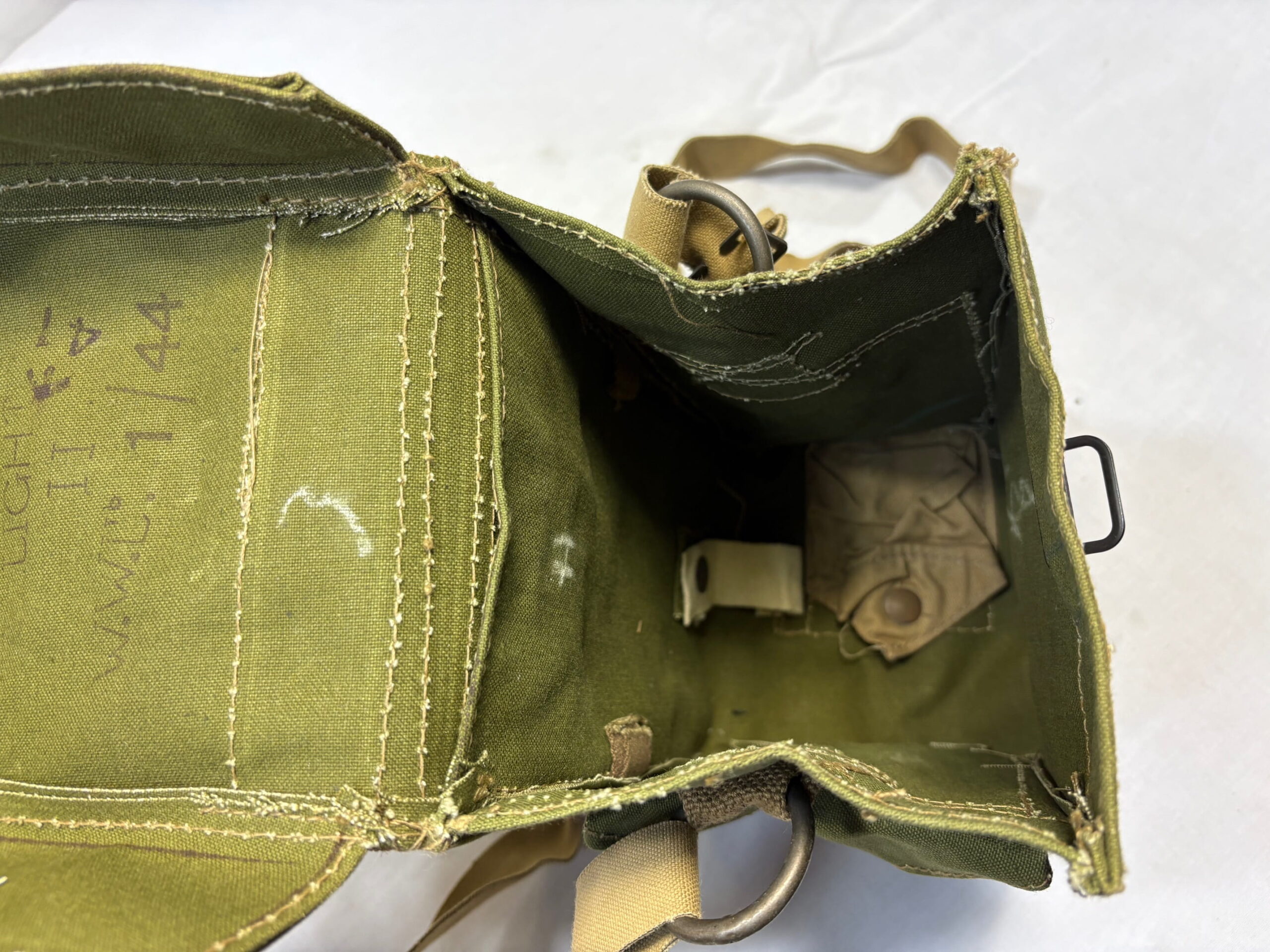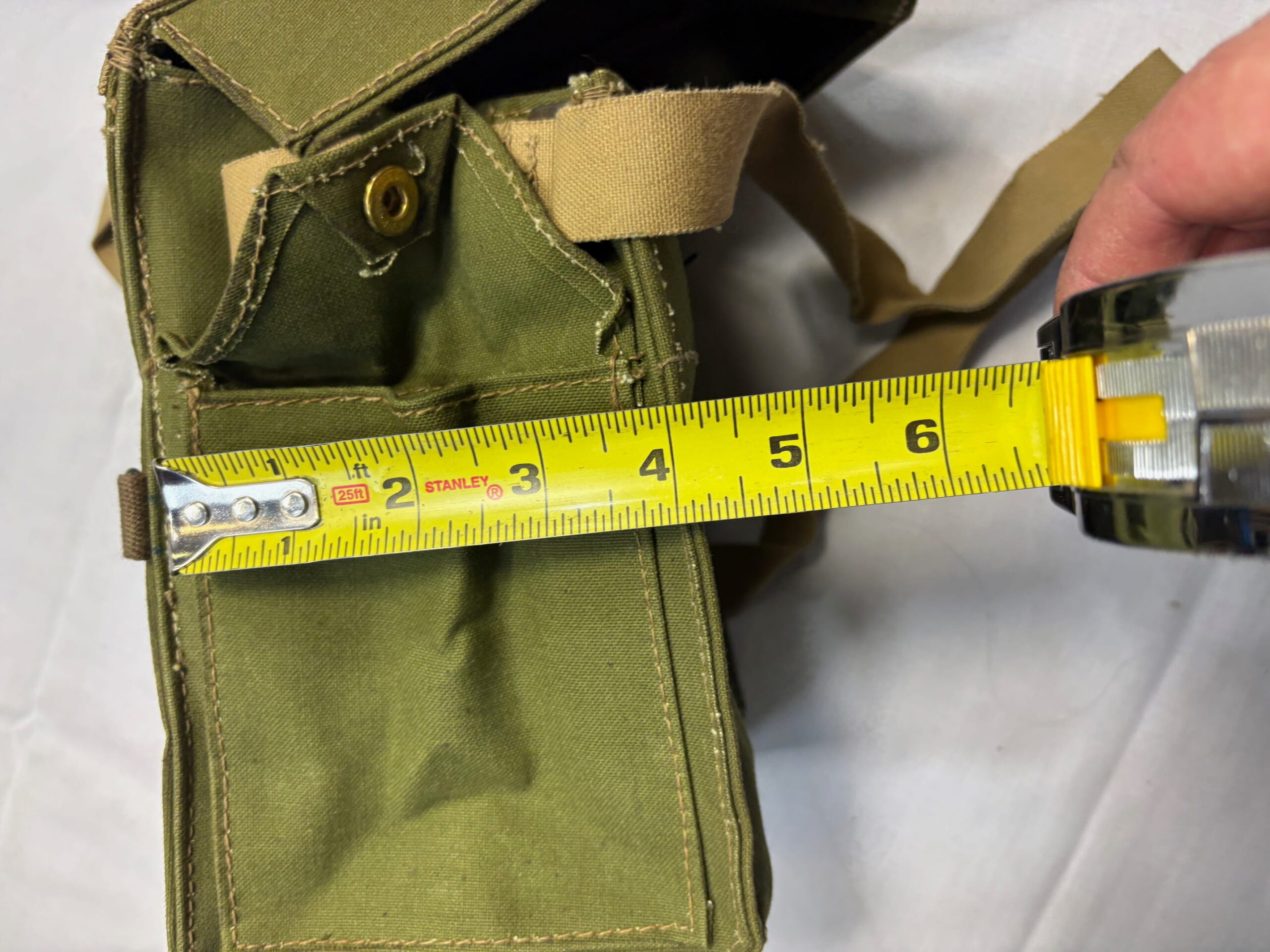 British Light 2 pouch Made in England during WW2. New old stock. WW2 stamps are legible. Most dated 1944. Measures approx 8″ x 4″ x 3″, with adjustable shoulder strap and belt carrying attachments/hooks (for M1944 web gear) Inner and side pockets small shoulder bag great for ammo, cameras, and accessories. Durable canvas will last for many years.