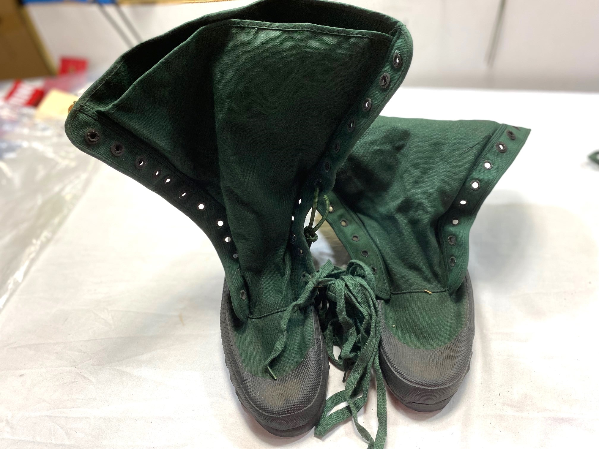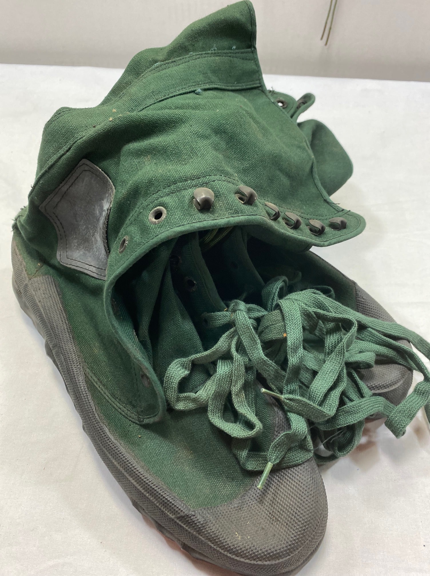 These were notorious for not being a good boot to walk around in the jungle. No drain holes and canvas would swell from getting wet. *mismarked boots, size 8-10?*