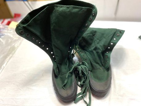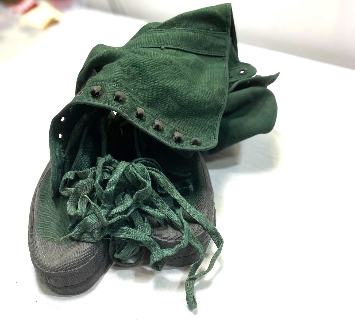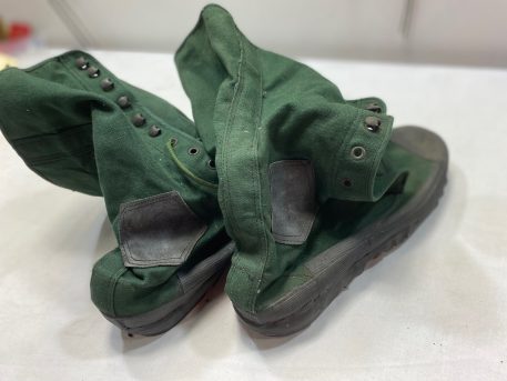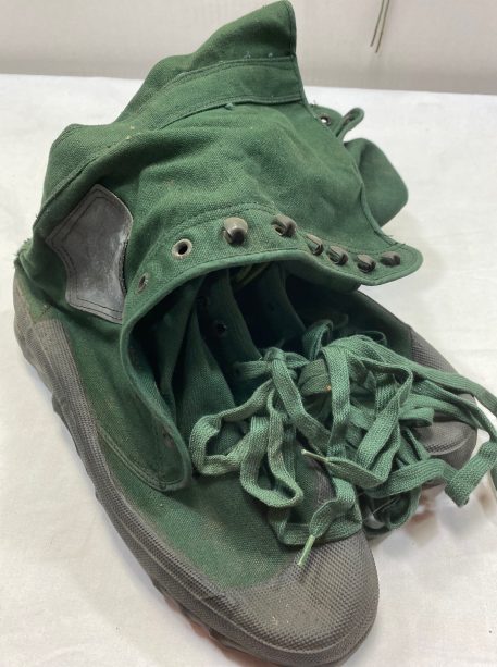 Canvas/rubber jungle boots used by British forces through Post-WW2 jungle warfare from the late 1940s through to the 1970s including the Malayan Emergency and the Indonesia Confrontation.