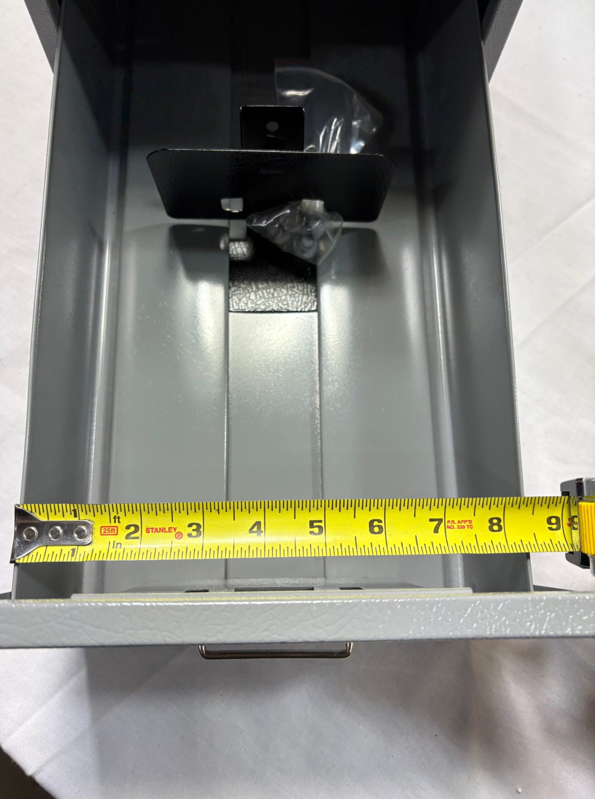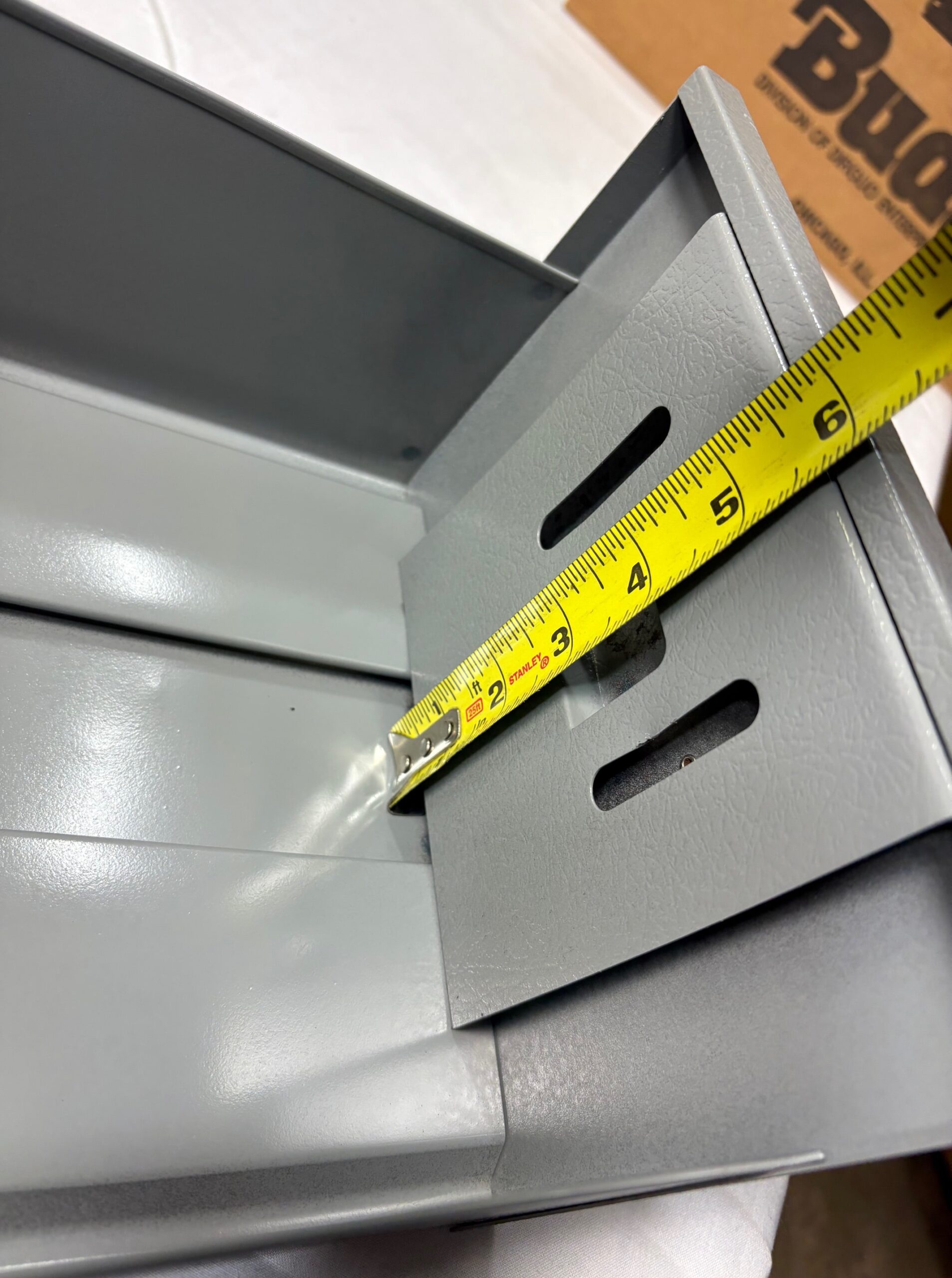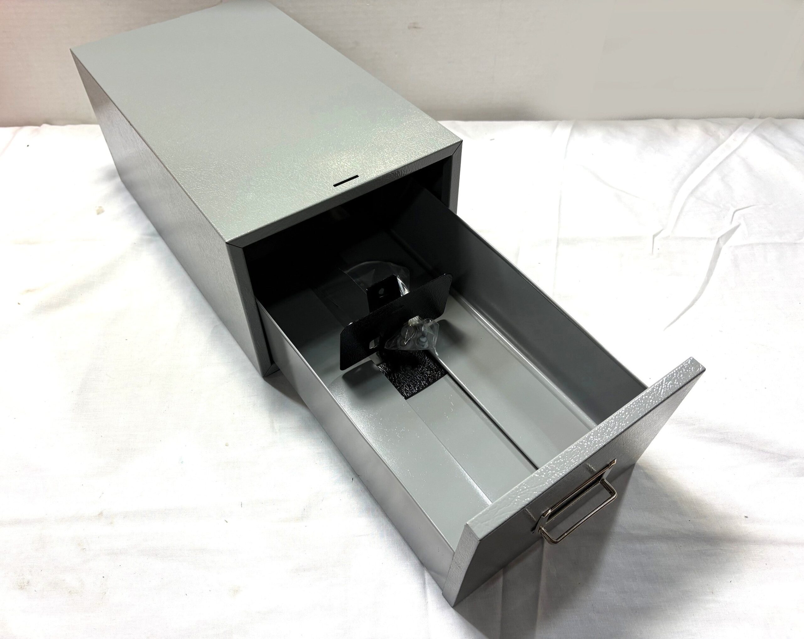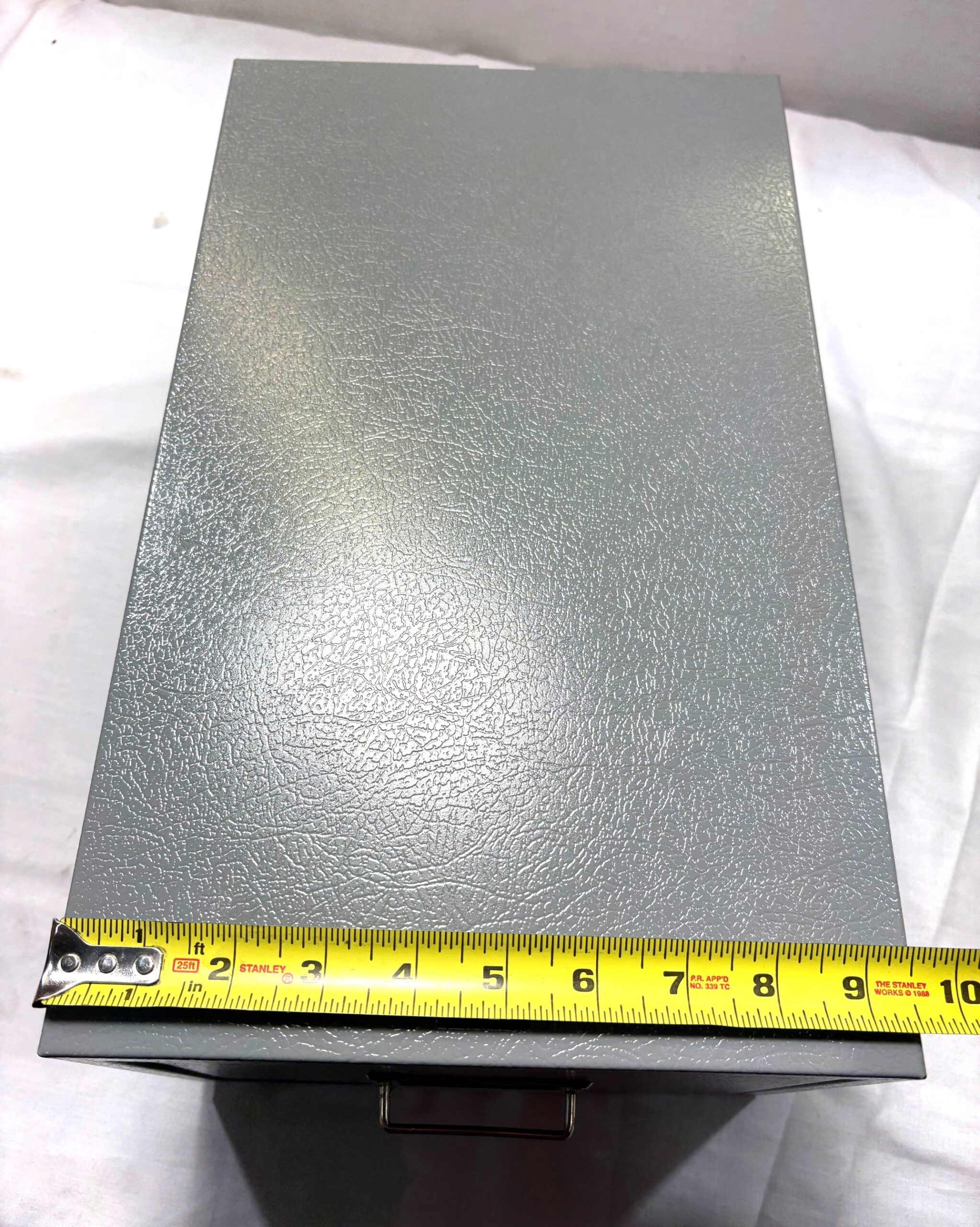 Metal file drawer made by Buddy. Similar to STEEL MASTER. New old stock government surplus. Single drawer file that is perfect for storage. These file drawers interlock and can be stacked securely. Overall dimensions are 9 5/8″ wide x 7 1/4″ tall and 16 1/4″ long. Weighs 9 lbs. Grey color.