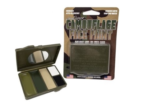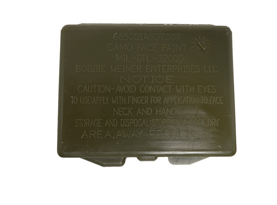 USA MADE. Includes mirror and is packed in a durable airtight, waterproof compact. Colors include: Black, White, Loam, Sand and Olive Green. Wedge sponge included in all 5 color Camo compacts. All Govt Spec colors.