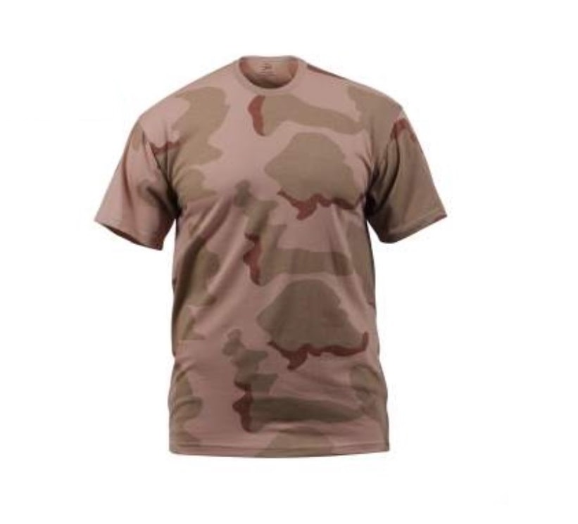 Desert camo t-shirt. 3-color military camouflage tee shirt. High quality short sleeve camouflage t-shirt from Rothco. Coffee Stain Camo. Iraqi Freedom.