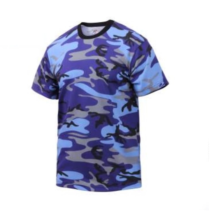 High quality short sleeve camouflage t-shirt from Rothco. Electric Blue Camo.