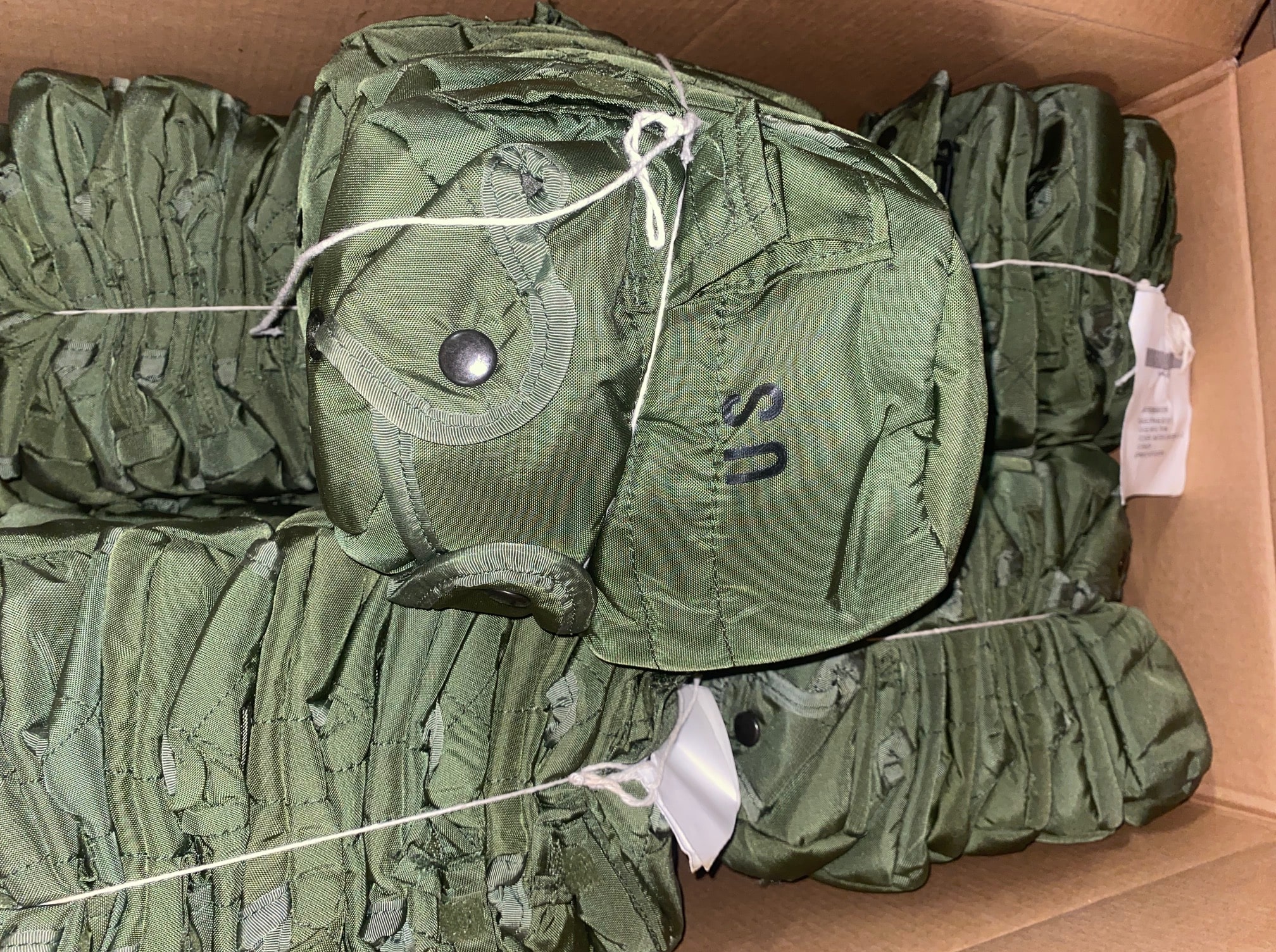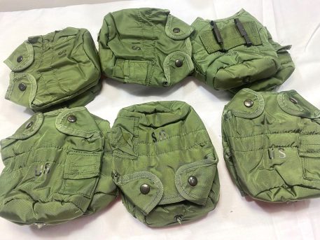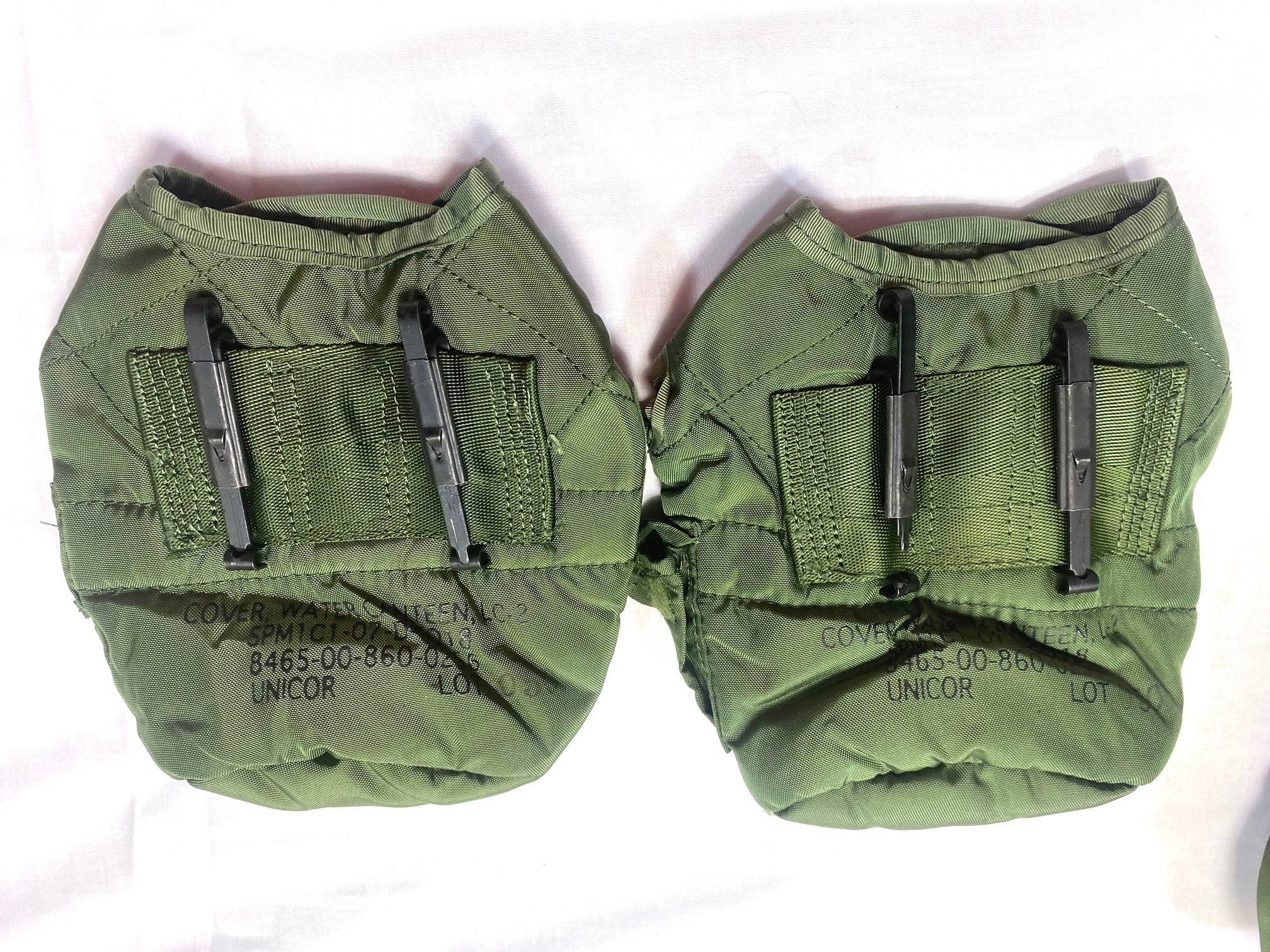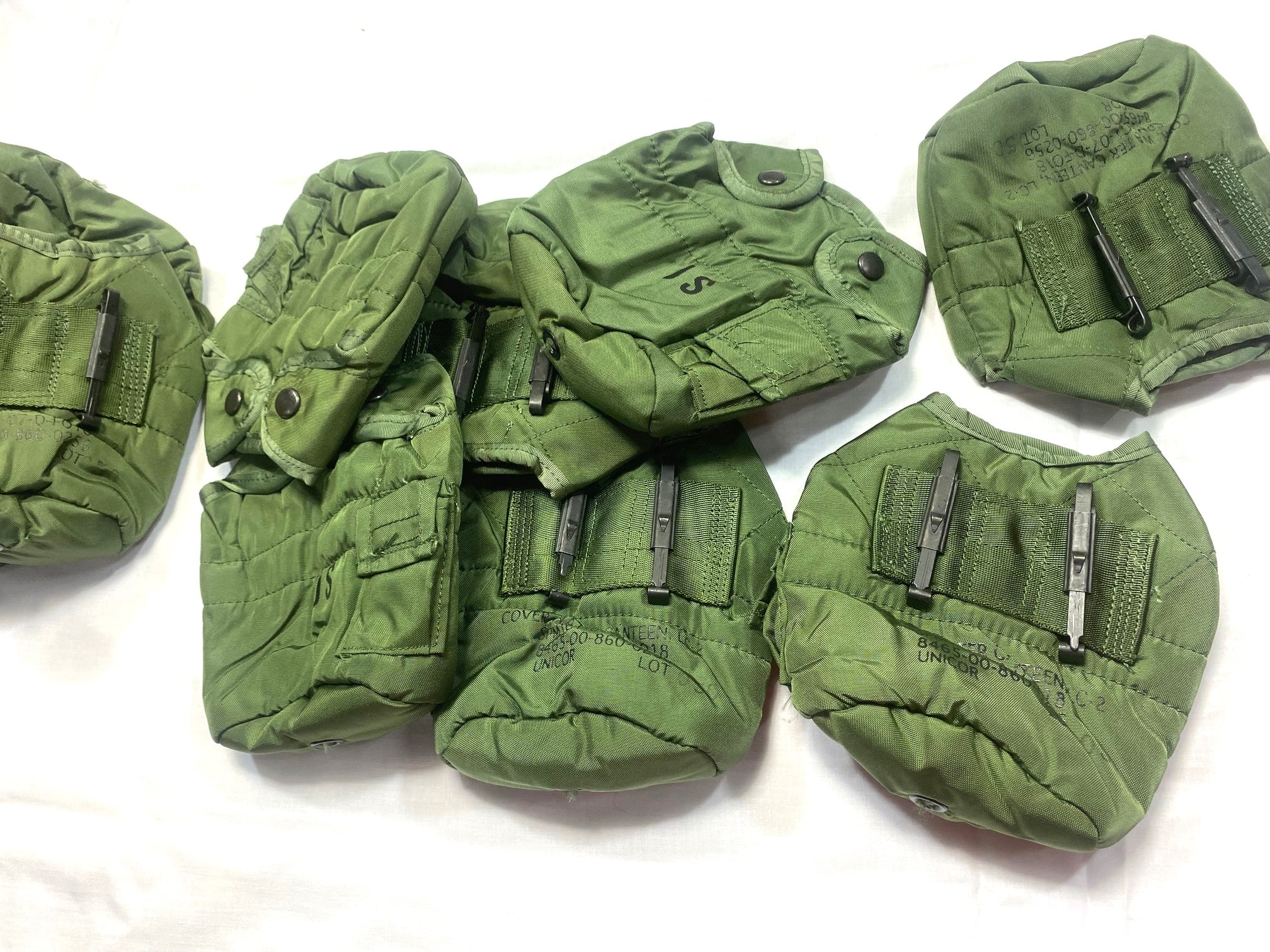 Military issue Army surplus nylon LC-1, LC-2 nylon canteen cover. This is the real thing. 100% official government issue. O.D. nylon 1 qt canteen pouch carrier with ALICE clips, new mint condition. Made by UNICOR. 12 pack bundle, save now!