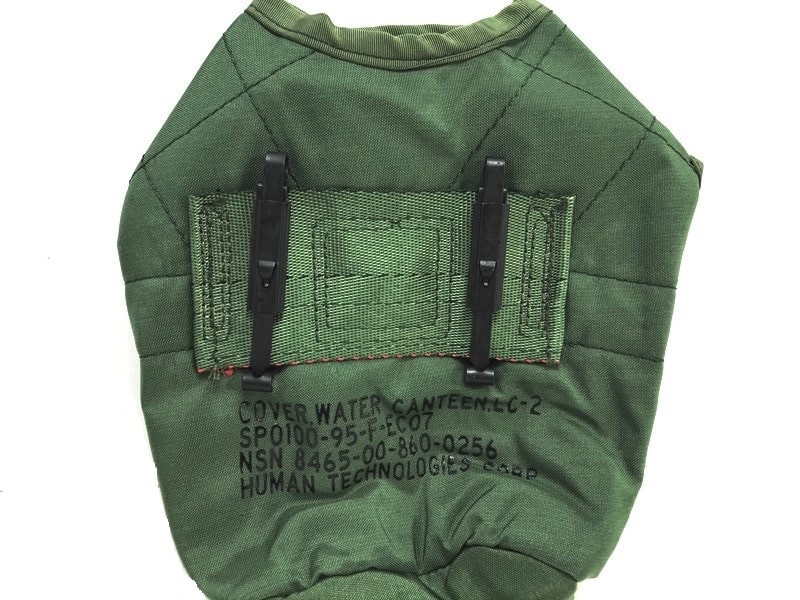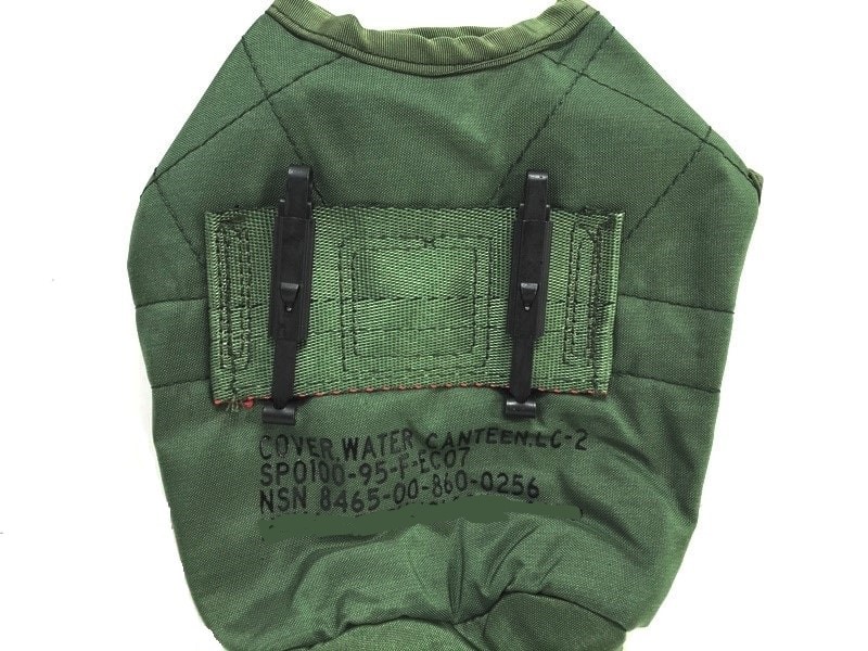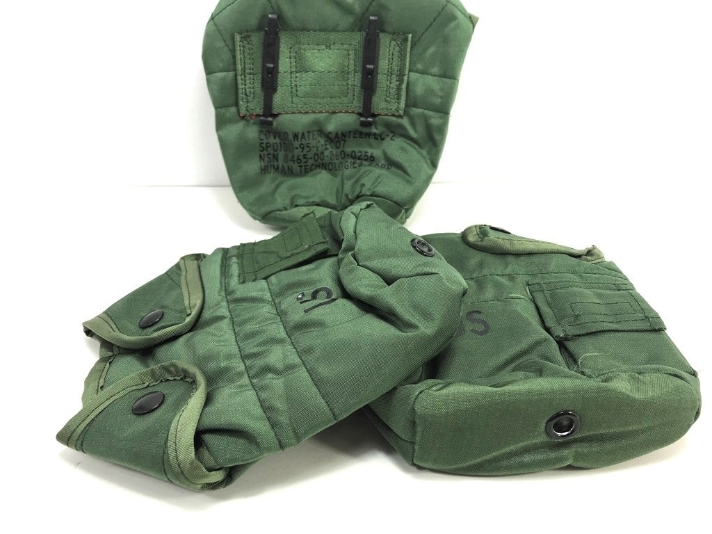 Military issue Army surplus nylon LC-1, LC-2 nylon canteen cover. This is the real thing. 100% official government issue. O.D. nylon 1 qt canteen pouch carrier with ALICE clips, new mint condition. Various dates and manufacturers.