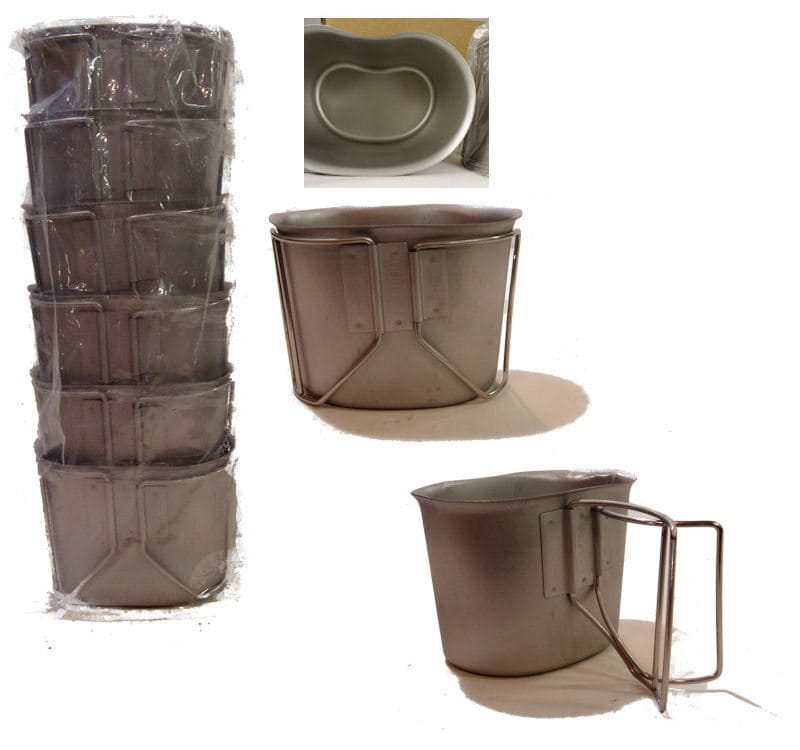 New genuine military issue canteen cup stainless steel with bi-swing wire handles