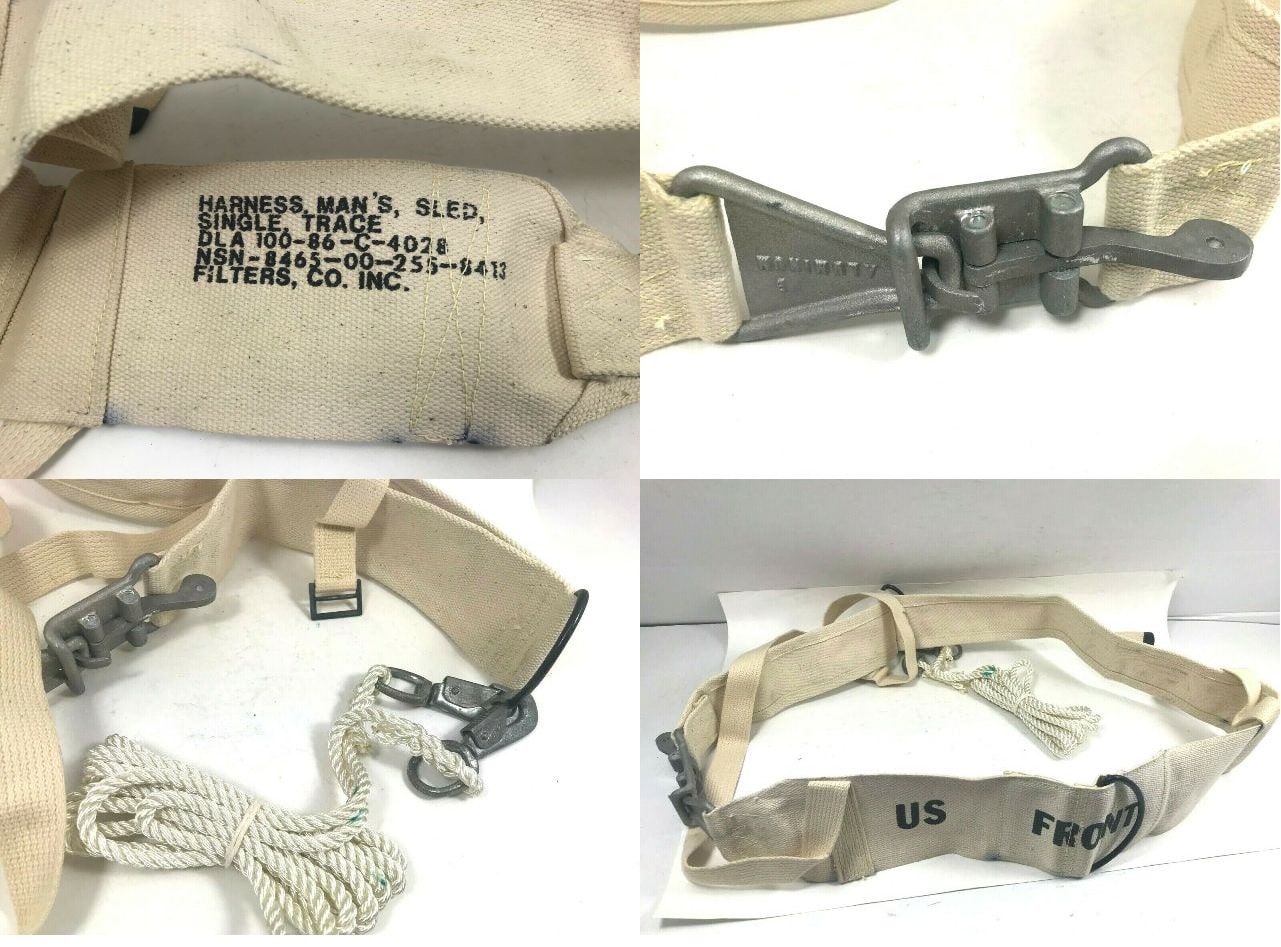 US ARMY WHITE COTTON CANVAS HARNESS FOR CARRYING SLED. 80’s dated surplus. New in original packaging.