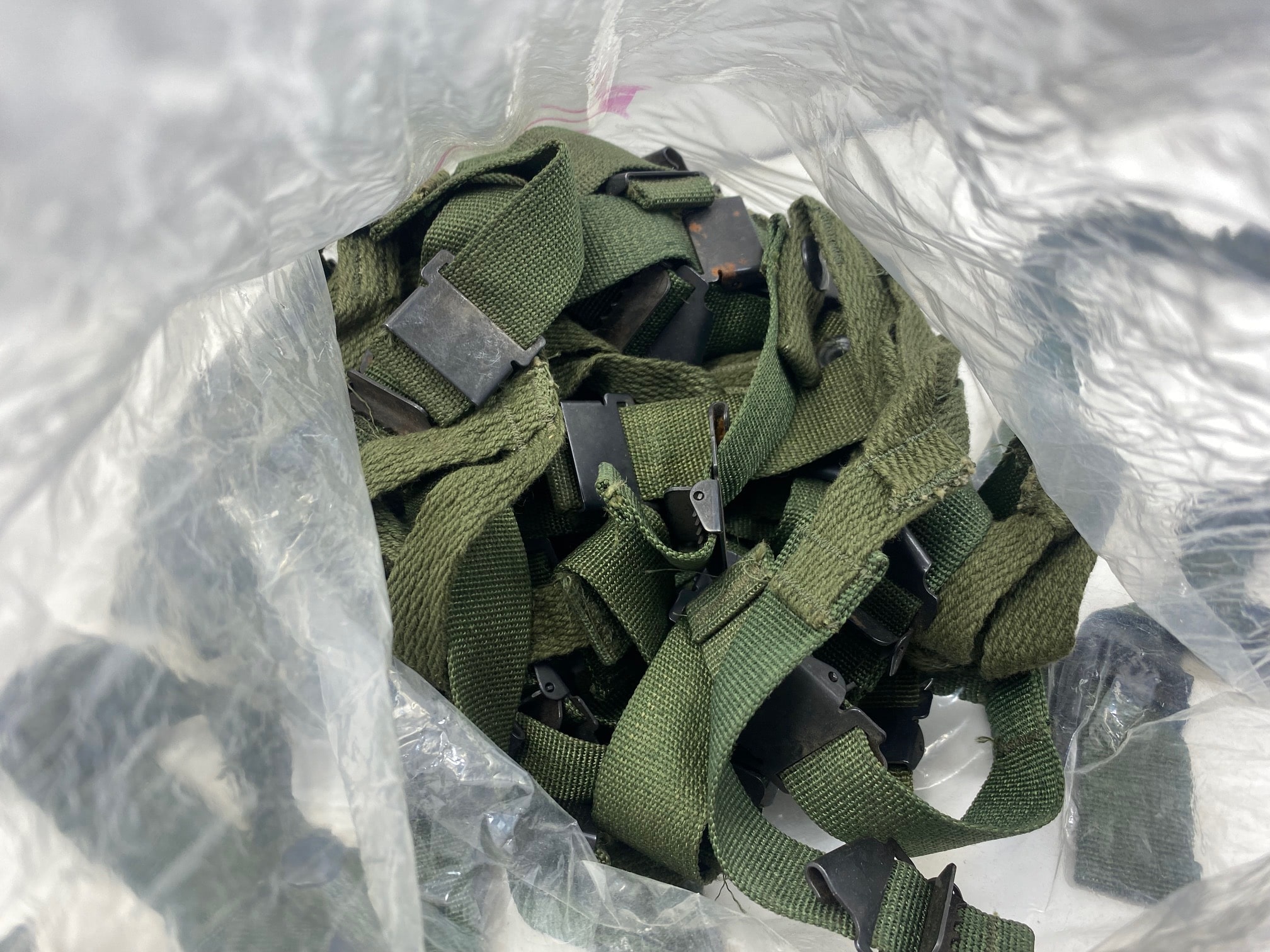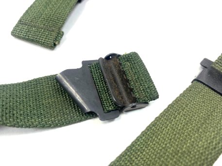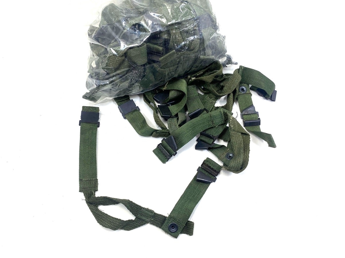 Military issue chinstrap nylon m-1 for the us army helmet. New old stock #2’s out of their original packages with shelfwear, some rust and patina building up on hardware.