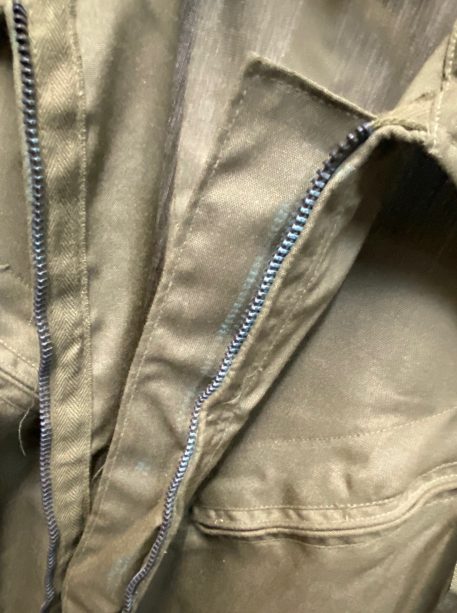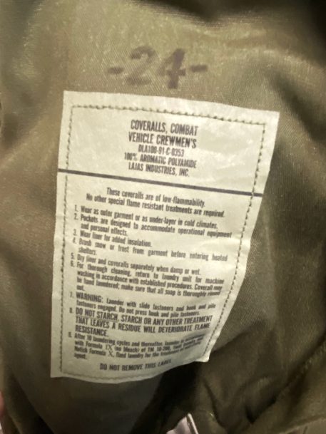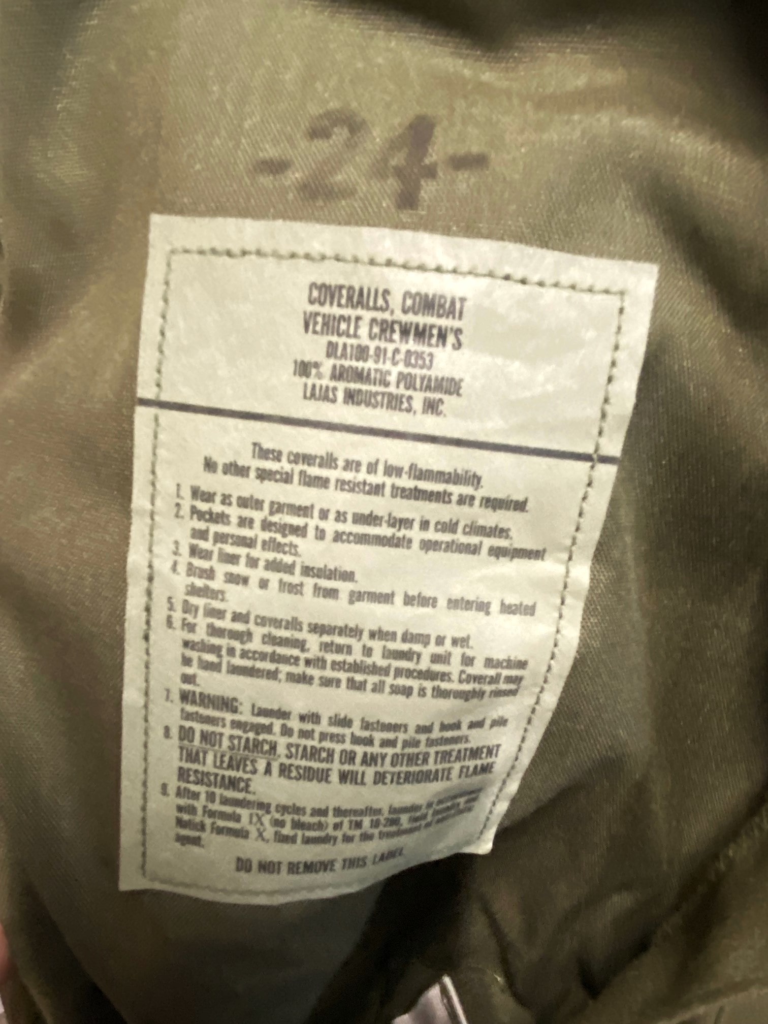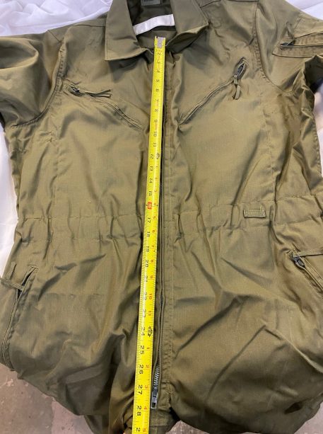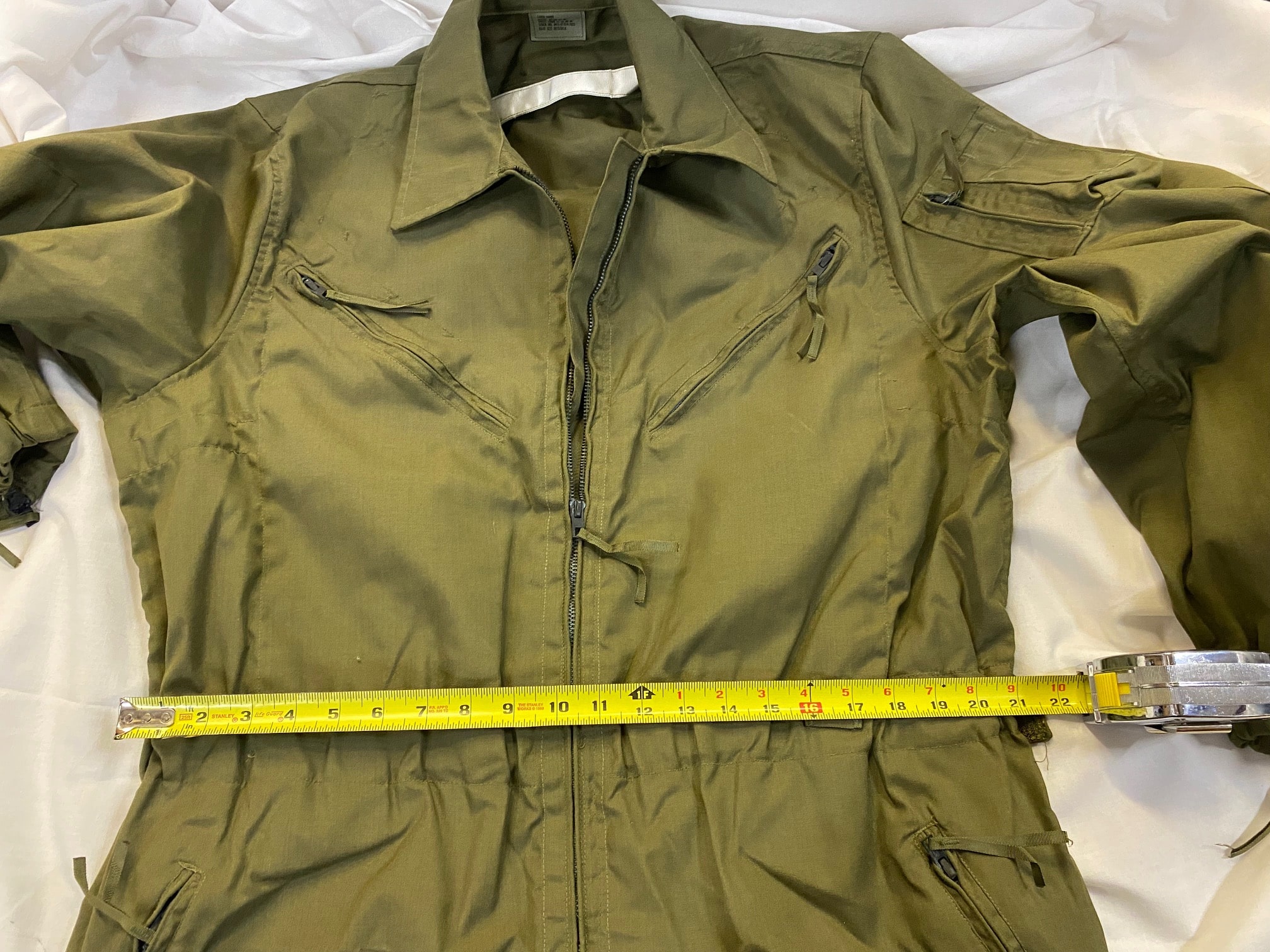 Standard genuine US issued CVC coveralls, olive drab aromatic polyamide (aramic, flame resistant) 100%. New old stock from 1990’s. Full length zipper. *note, some oxidation has started to form on the zippers from age*