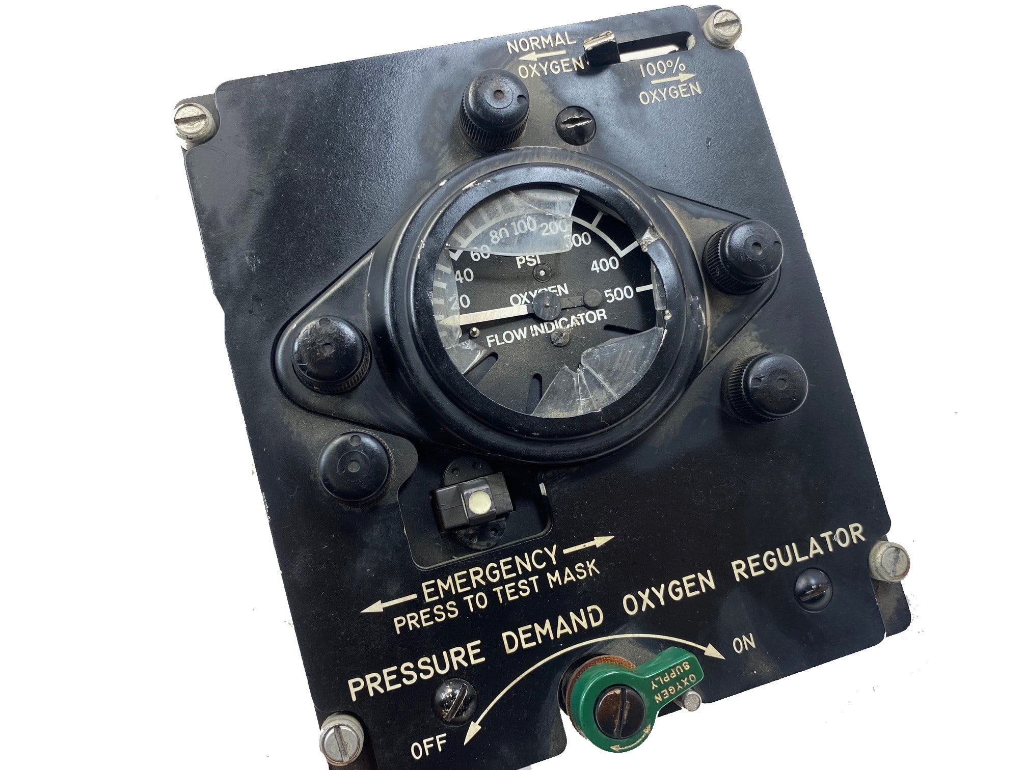 Aircraft aviation collectible. D2-A oxygen regulator panels. Used-rough with missing parts, dirty, and BROKEN GLASS on reader.