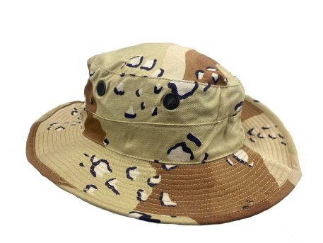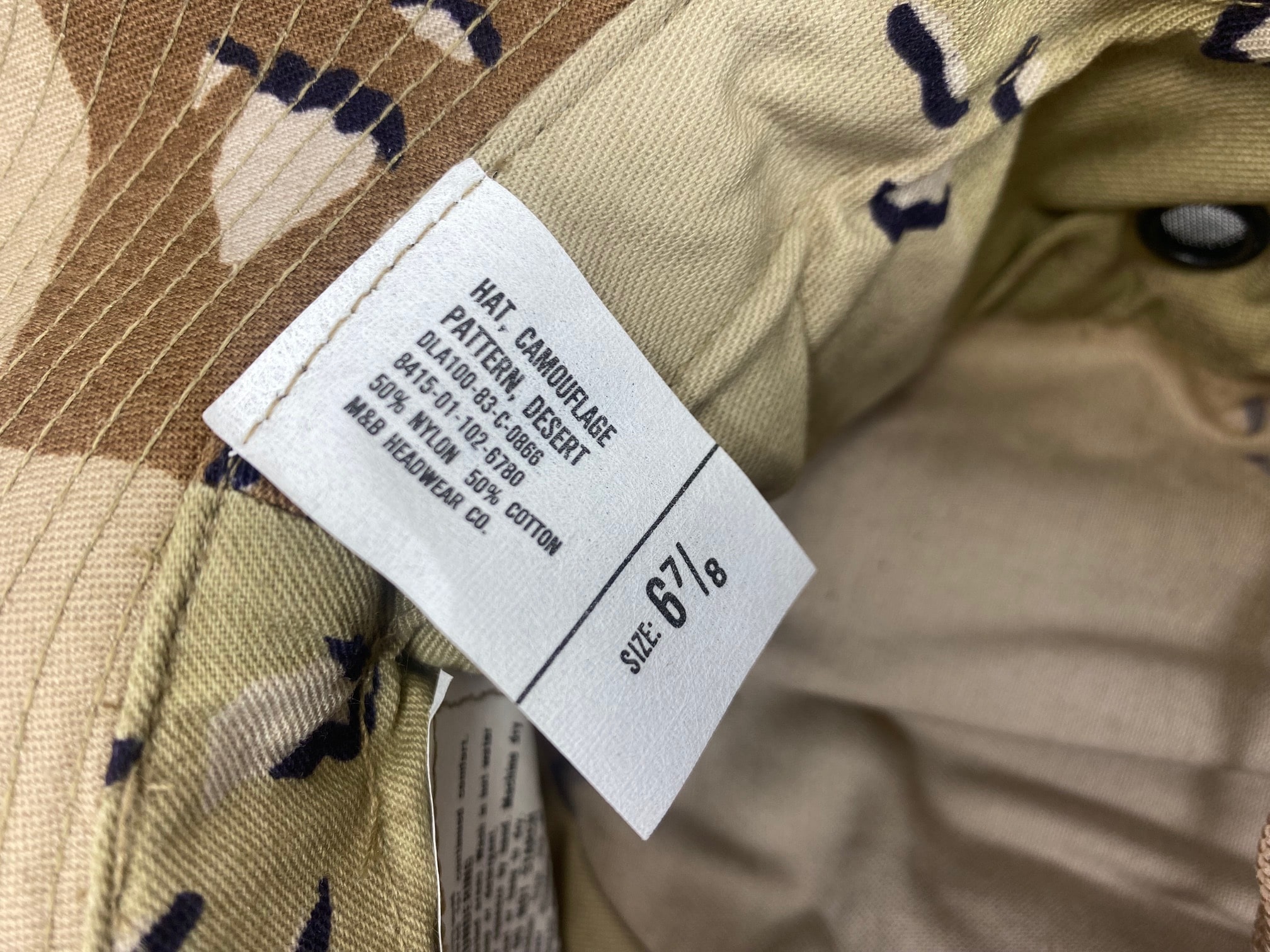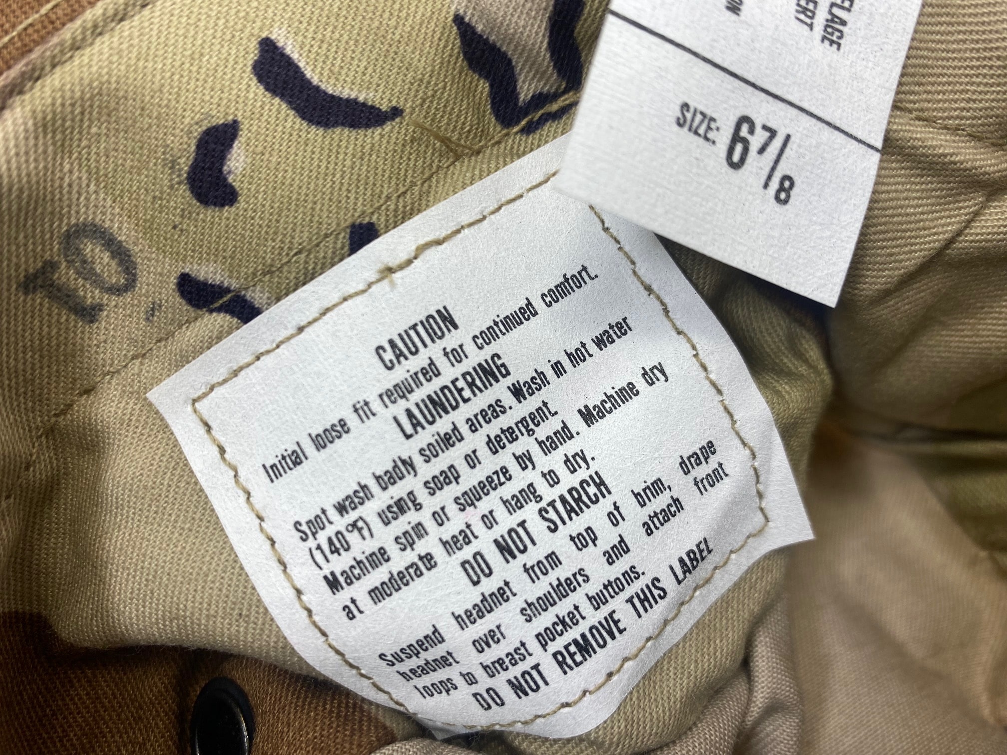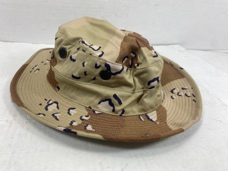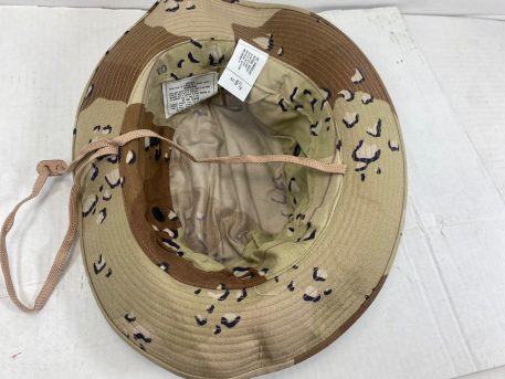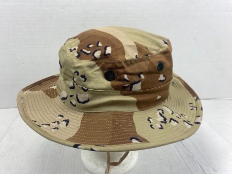 Original Chocolate Chip Desert Boonie hats worn by our forces in the middle east Persian Gulf area during Desert Shield and Desert Storm. Full brim cover. The famous “chocolate chip” 6 color desert camouflage pattern. These are small! about Xtra- Xtra – Small. NEW CONDITION!