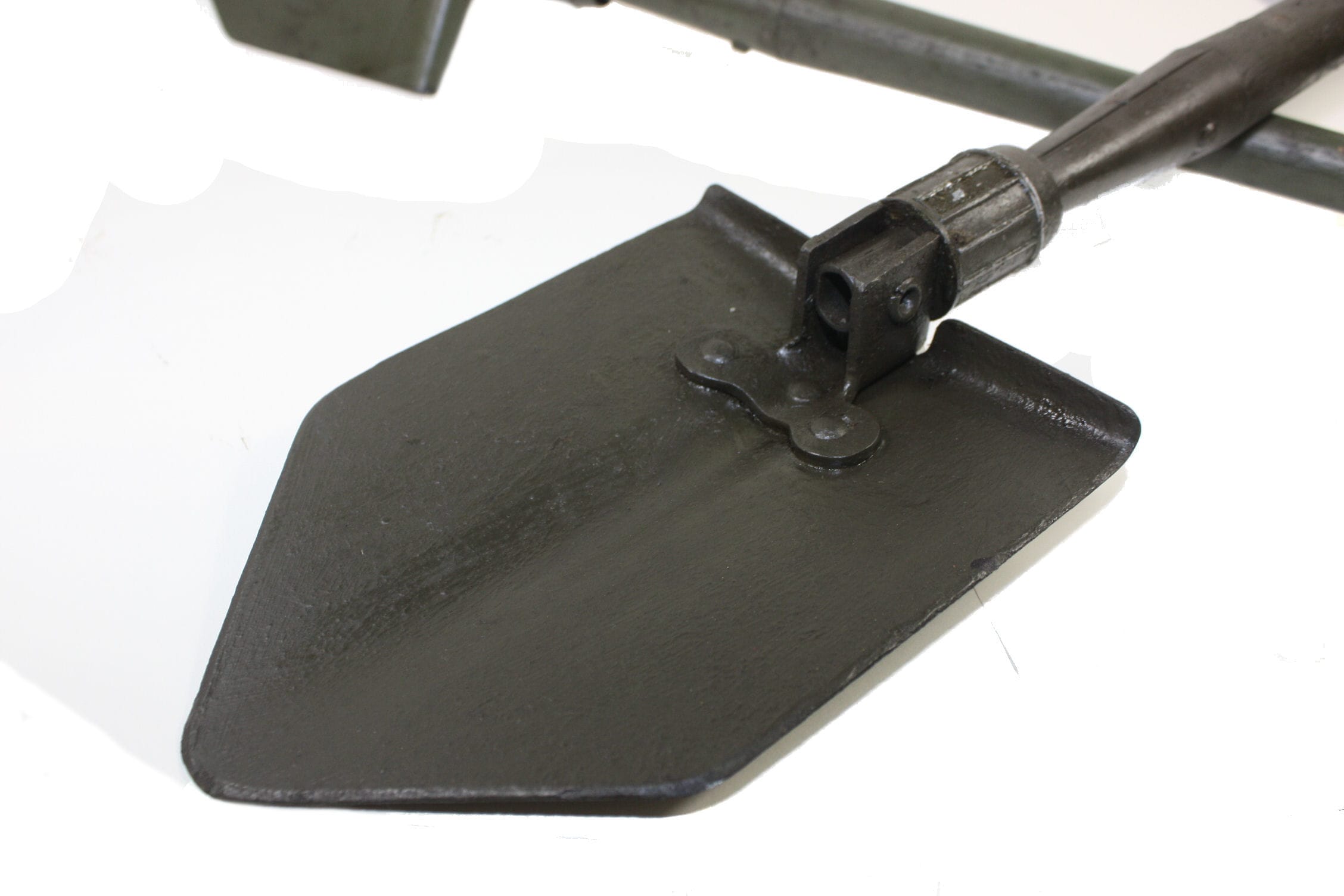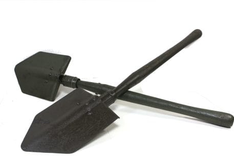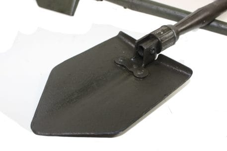 Solid oak wood handle and a heavy gauge steel folding head make this the best entrenching tool ever designed or used. Fold the shovel 90 degrees and lock down for some serious pick action.