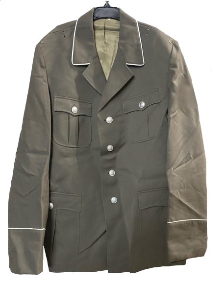 Post World War 2 EAST GERMANY military dress jacket. German sizes 48 to 52 which is medium, medium larges. Check with us on availability of sizing and styles.
